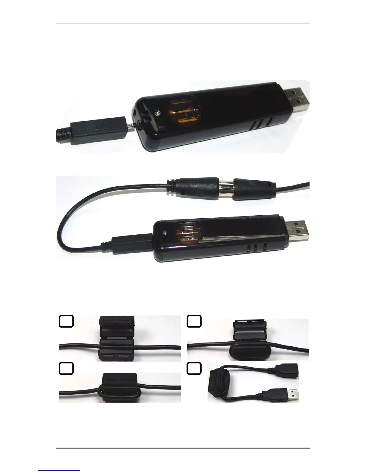 Note: If you need to use the USB port extension cable, attach the EMI core to the USB