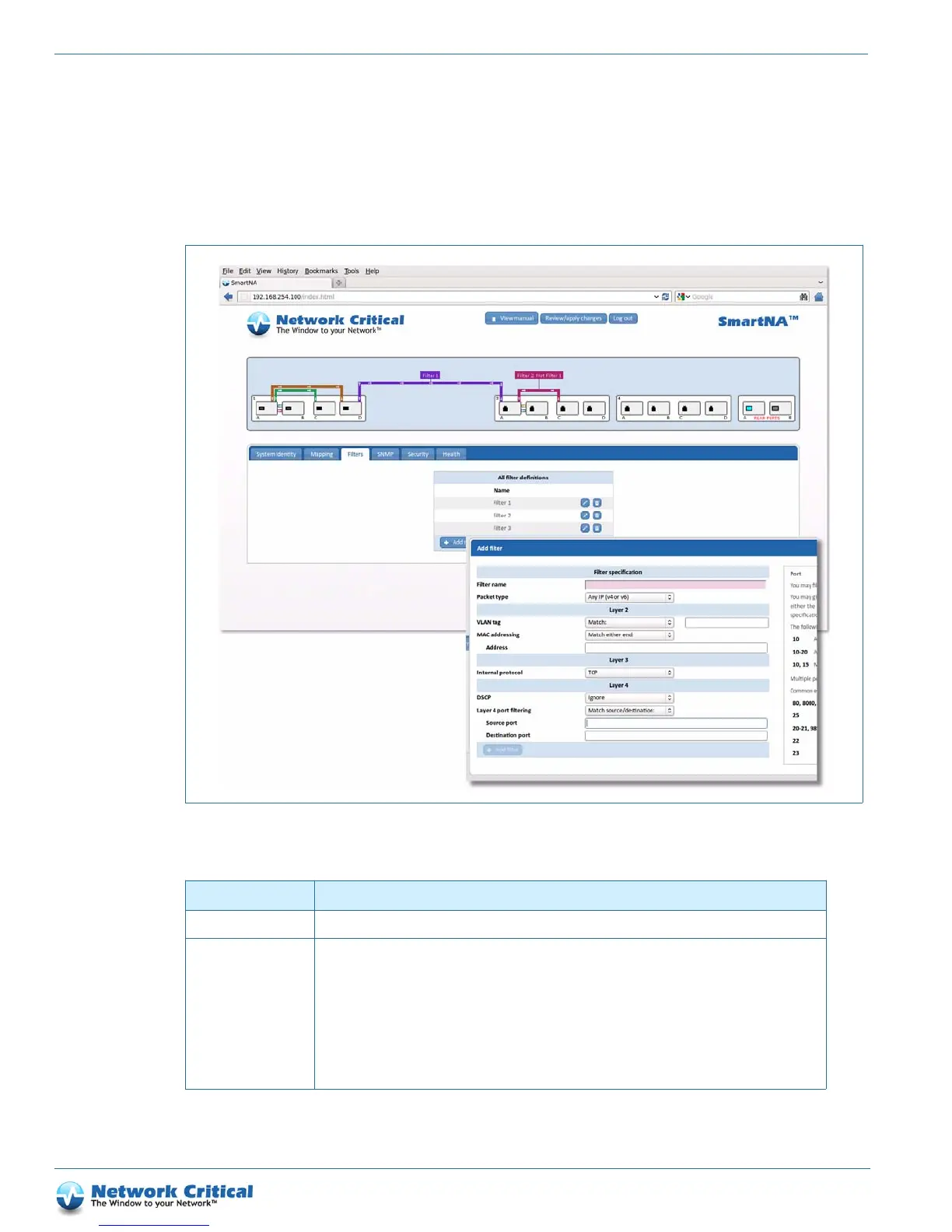 edit, add and delete them. The table below shows the options that are available when setting up packet filters.