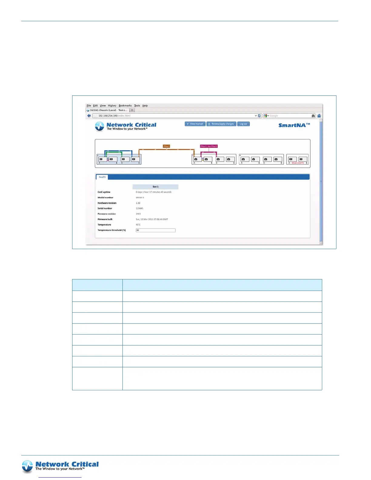 WEB USER-INTERFACE REFERENCE | TAP MODULE HEALTH TAB