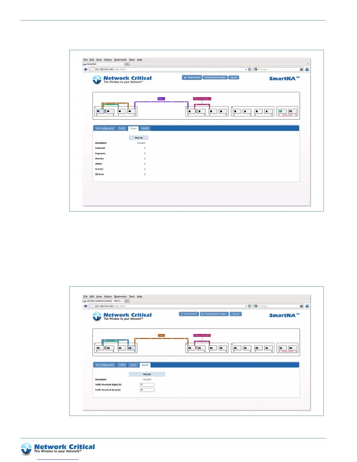 The port Health tab (Figure B-12) is available after clicking on a port. It provides access to the settings shown in