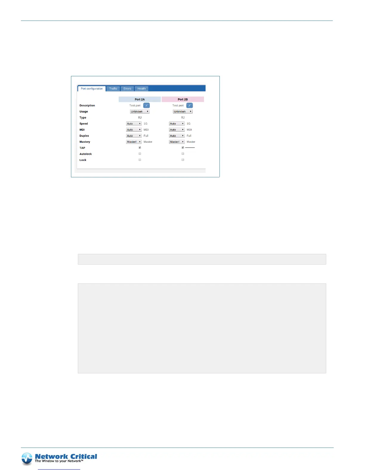 3. Enter the following command to enable TAP mode on port A (port B is automatically enabled as a result):