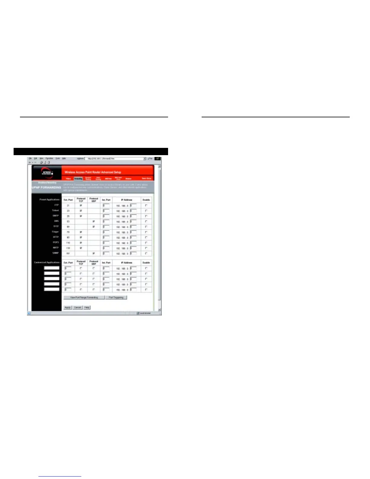 Clicking the Forwarding tab will access the UPnP Forwarding screen, shown in