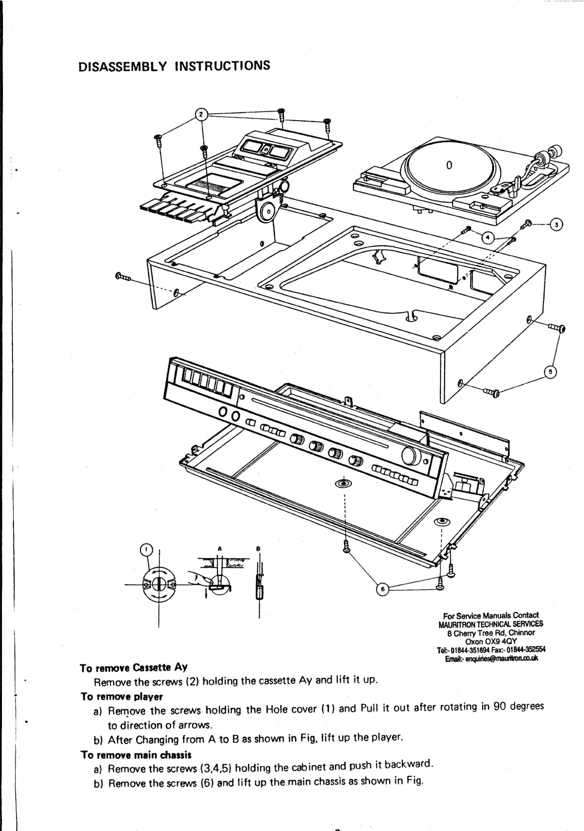 network 600 - Disassembly Instructions; Remove Cassette Unit; Remove Turntable Player; Remove Main Chassis