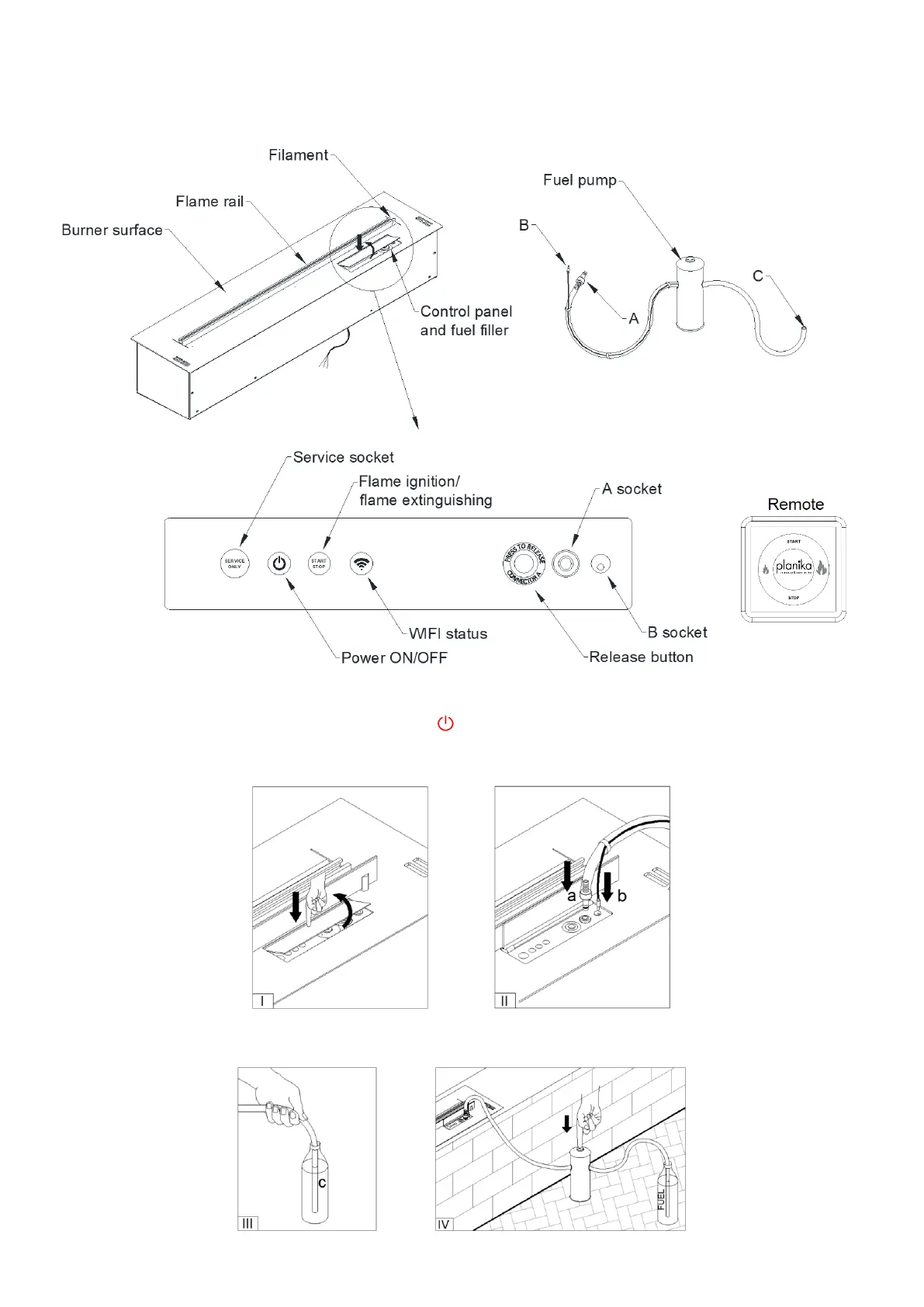 b) If the fuel tank is empty (START/STOP BUTTON BLUE LIGHT ON) or you want to add fuel to the burner, firmly