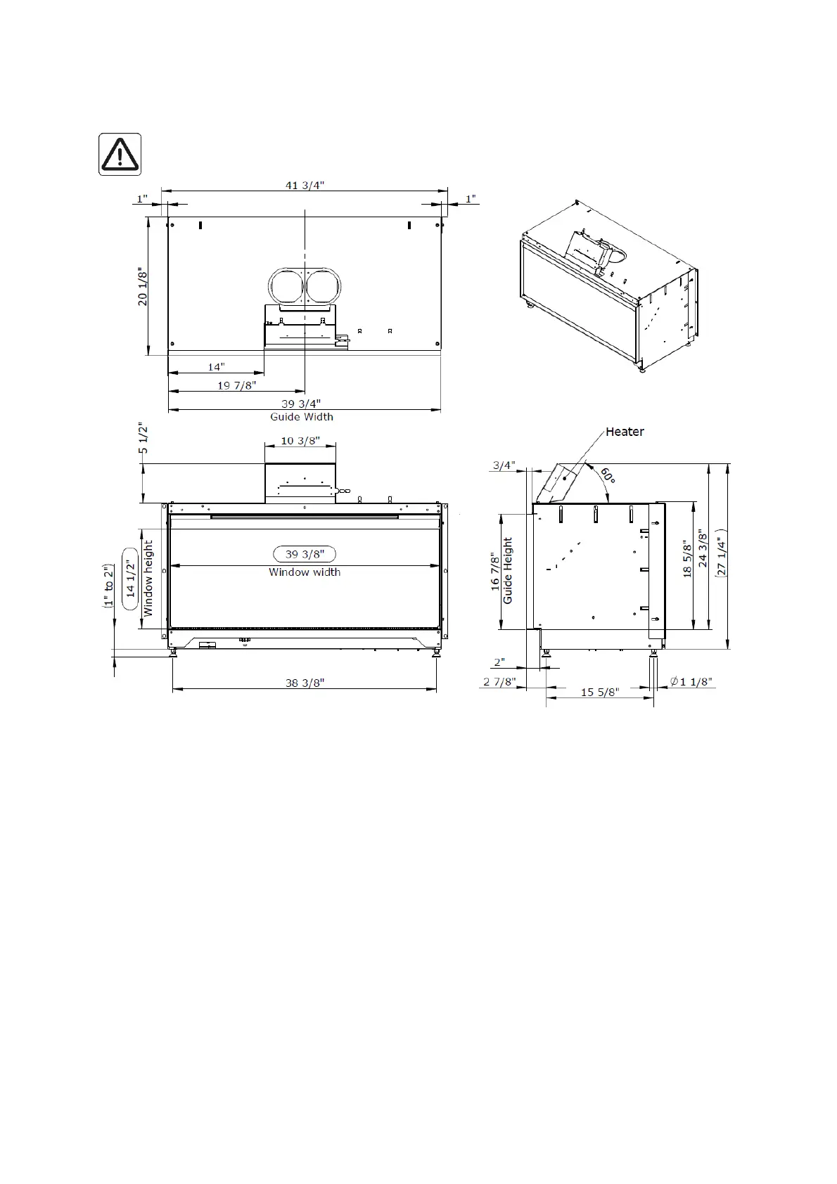 the fireplace. Do not frame in front of the heater. Doing so will not allow the heater to be removed for service.