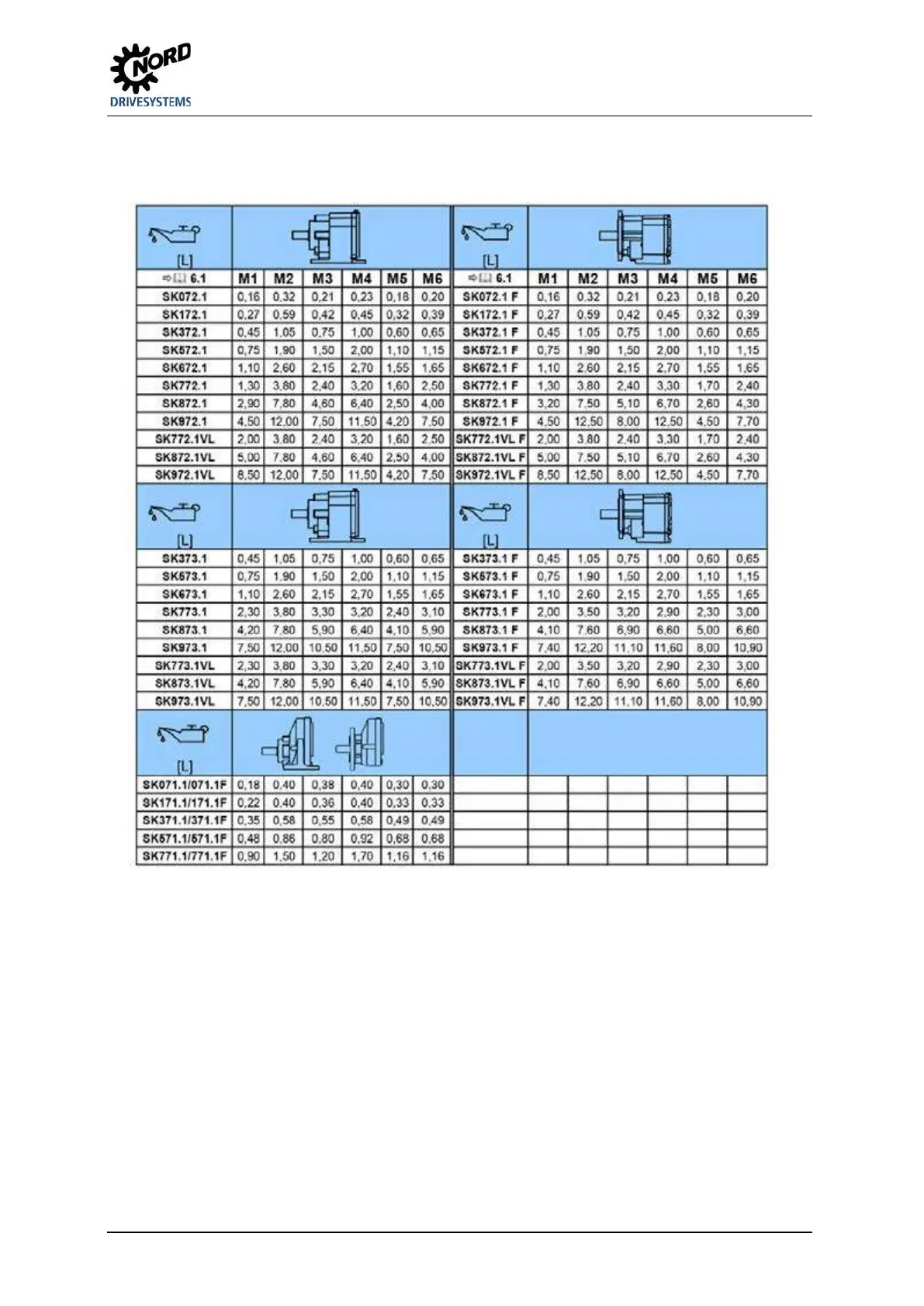 NETZSCH NM125BY B.1 Series - Table 7: Lubricant Quantities for NORDBLOC