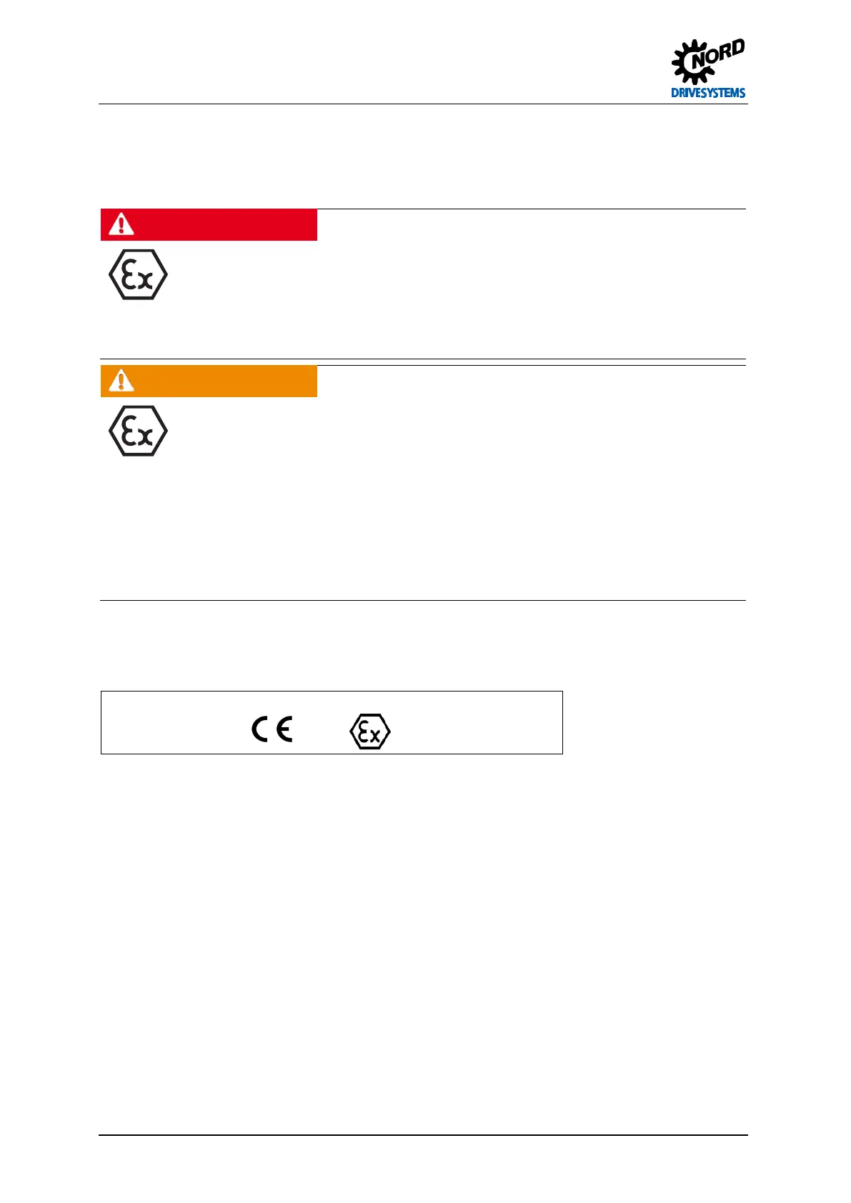 If the motor is attached to a gear unit, the EX labelling of the gear unit must also be observed!