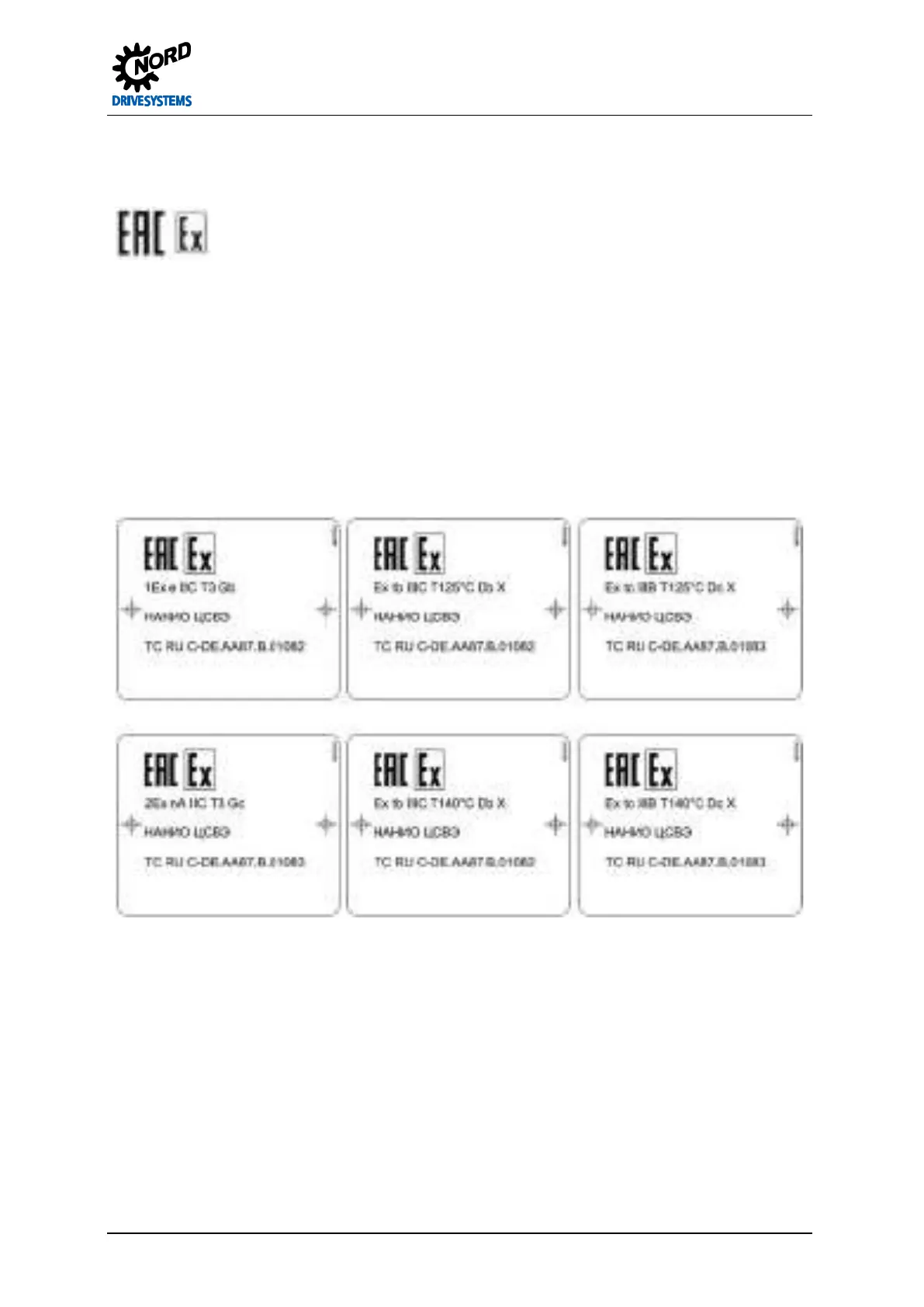 Motors with the labelling listed below have EAC Ex approval according to TP TC 012/2011 for the