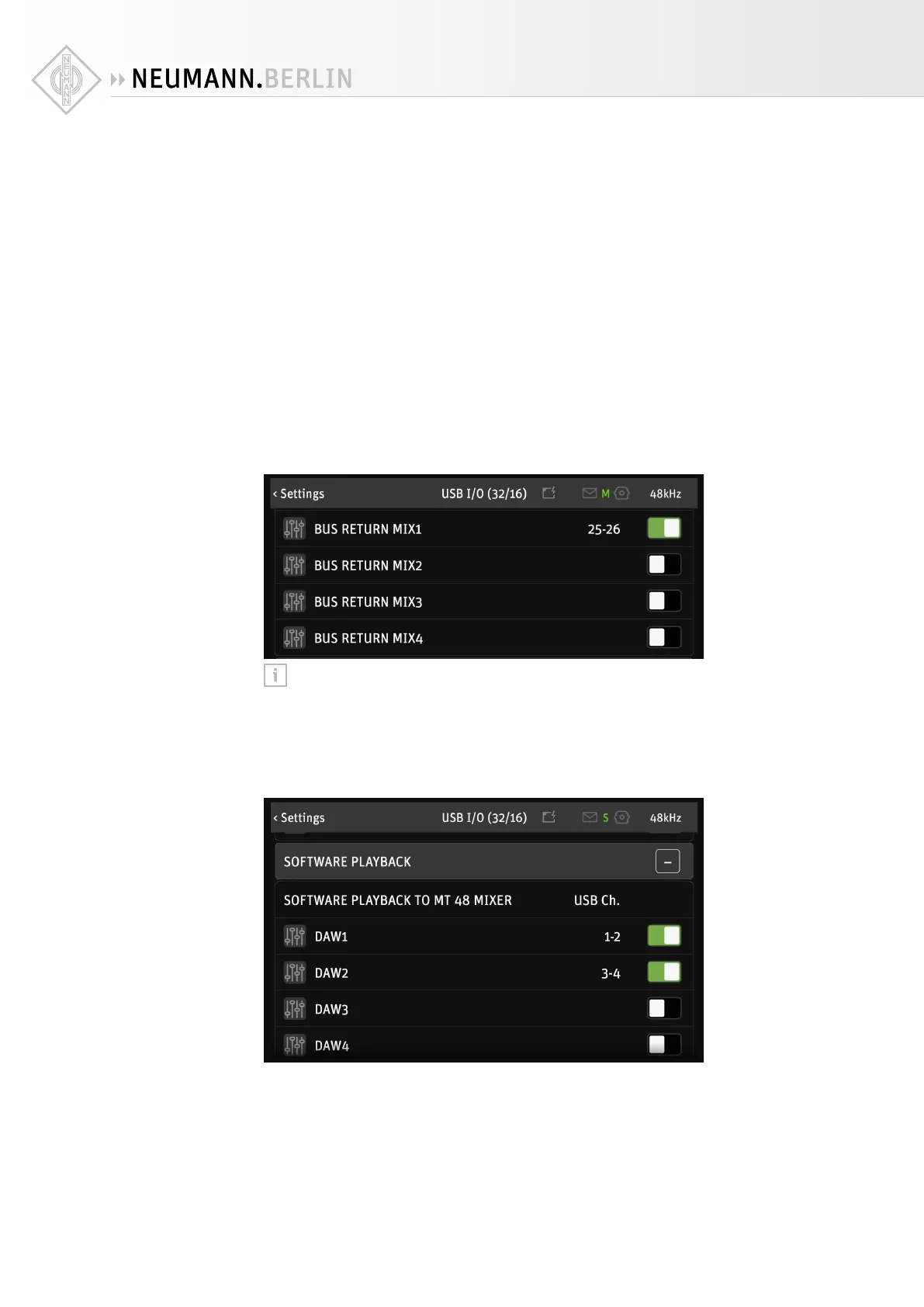 • Bus Return Mix 1/2/3/4 – This allows you to record the output of one (or more) of the inter-