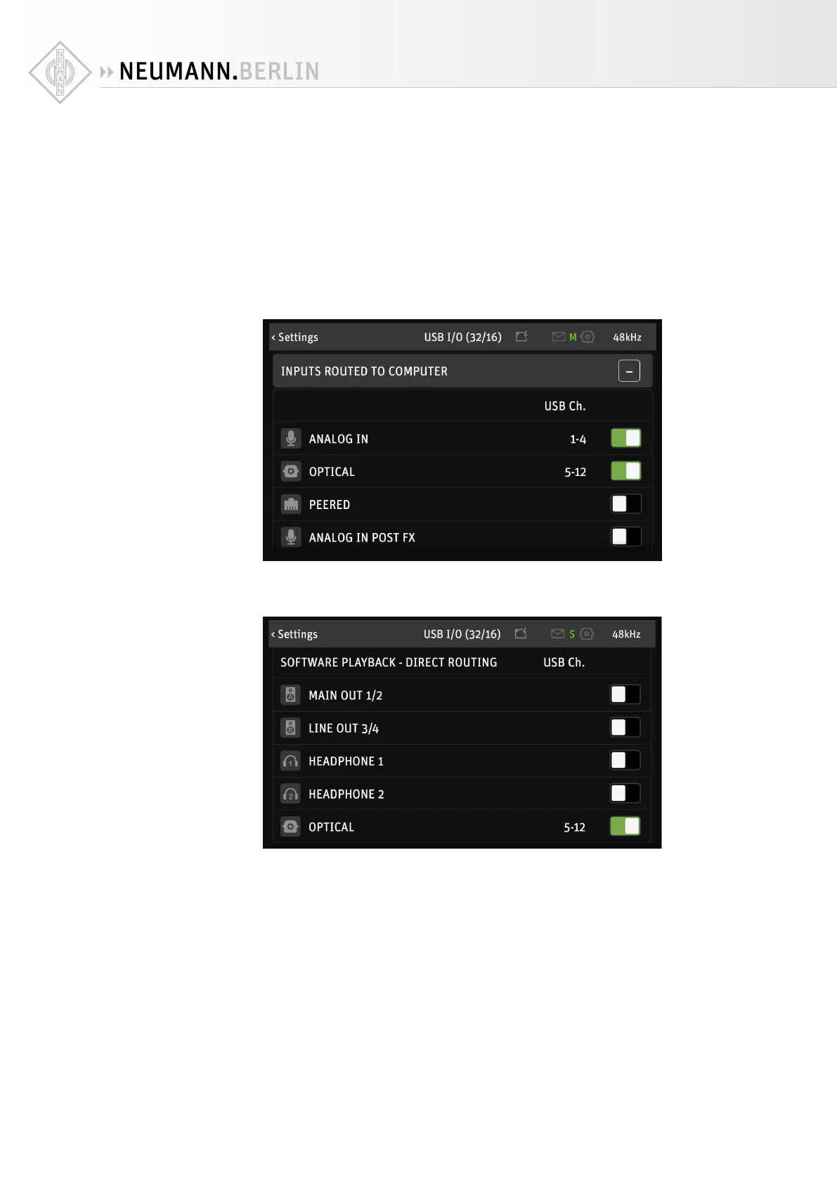 3. Go to SETTINGS → USB I/O → SOFTWARE PLAYBACK – Direct Routing and activate OPTICAL.