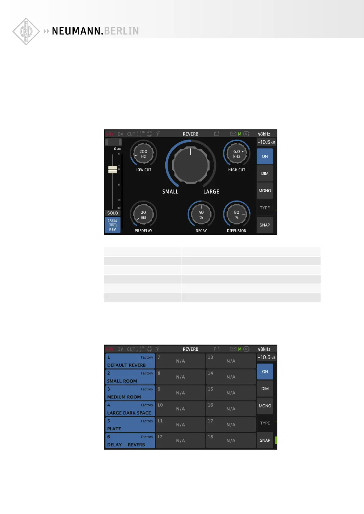 Please note that reverb is for monitoring purposes only, i.e. to give singers and musicians