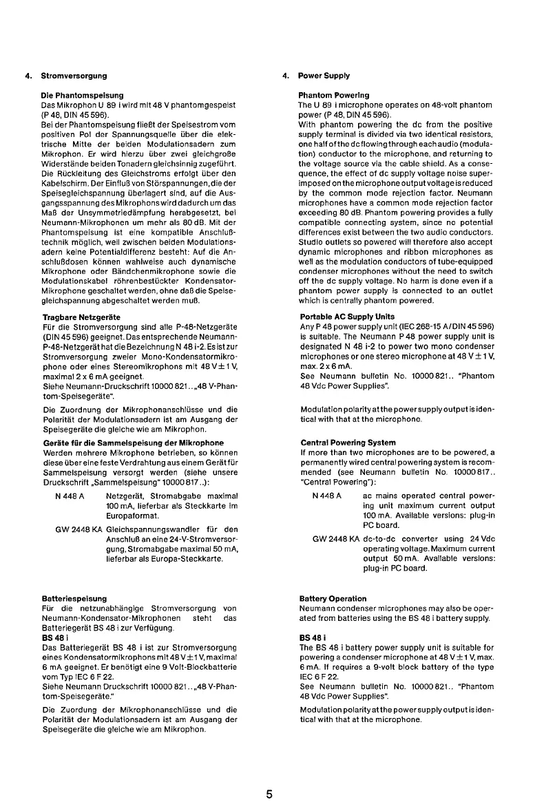 Neumann U89 - Portable AC Supply Units; Central Powering System; Battery Operation