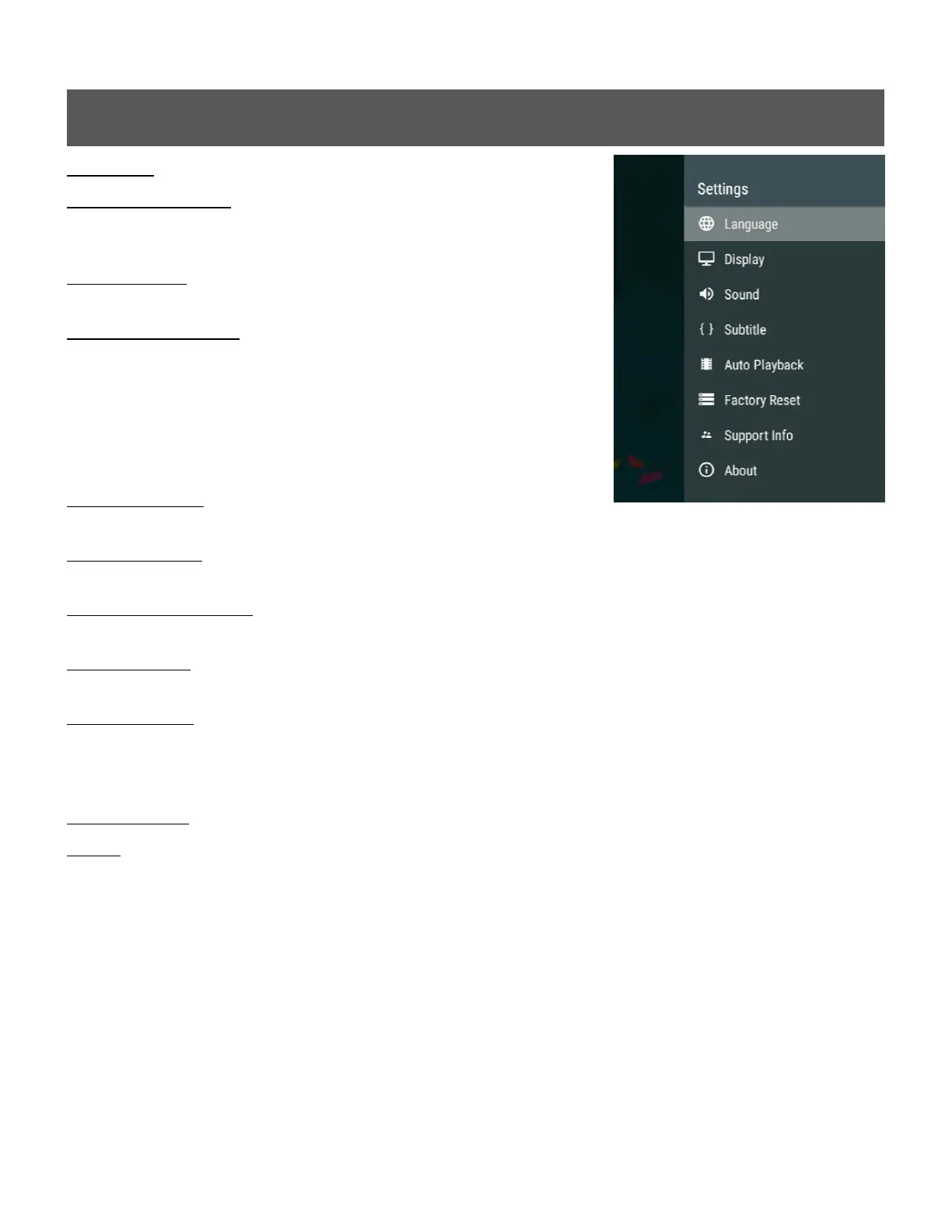 Language - Sets the media player’s operating language