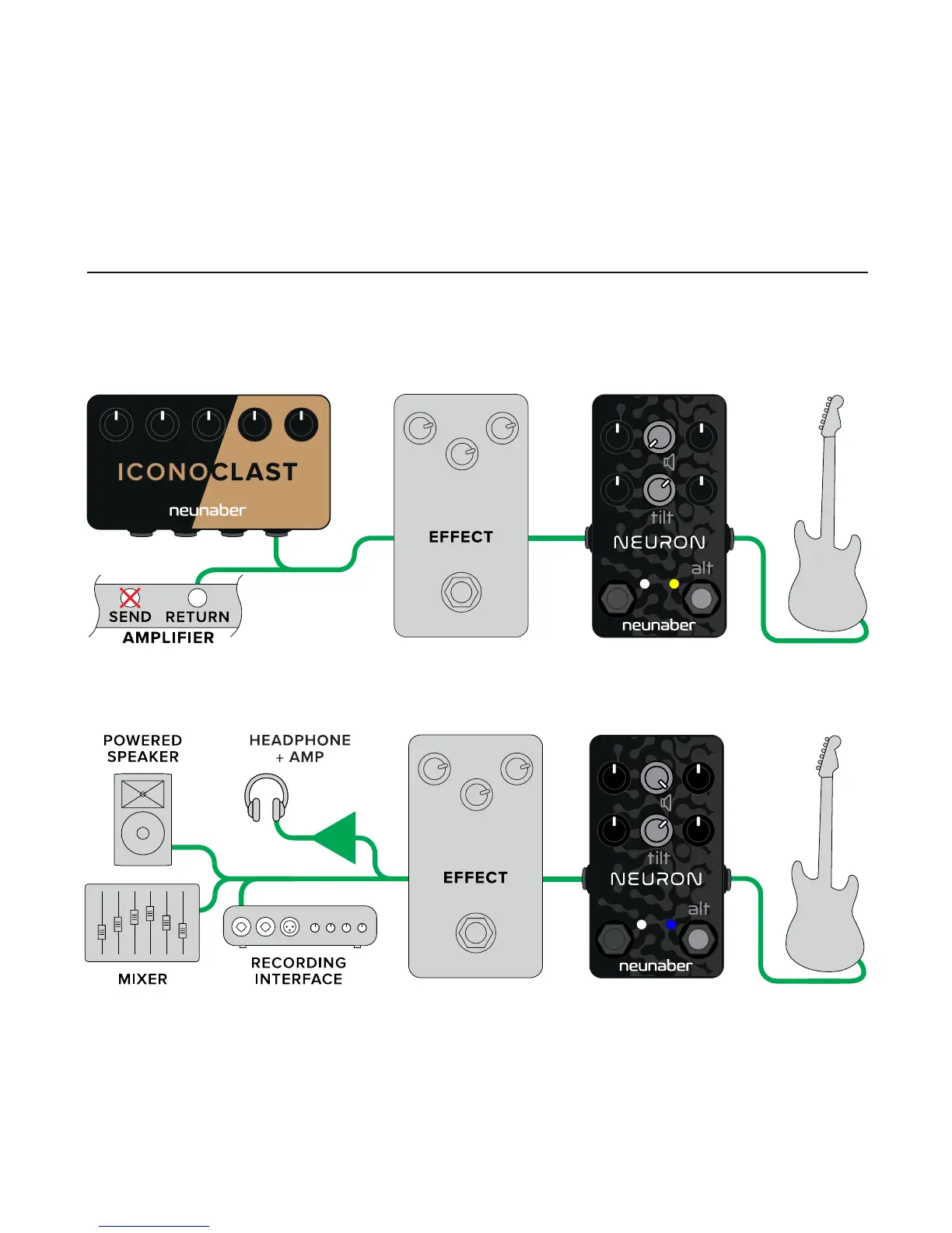 Neunaber NEURON - Connections; External Speaker; Simulator; Direct with Internal Speaker Simulator