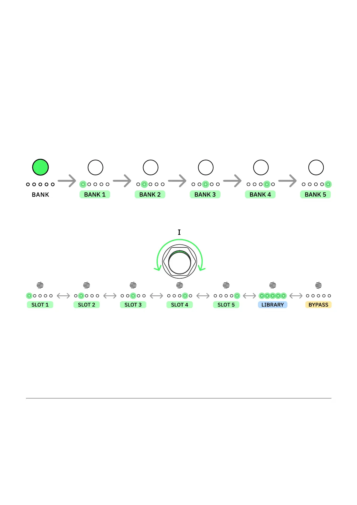Press BANK to cycle Capture Banks. The LEDs will light up according to the bank selected.
