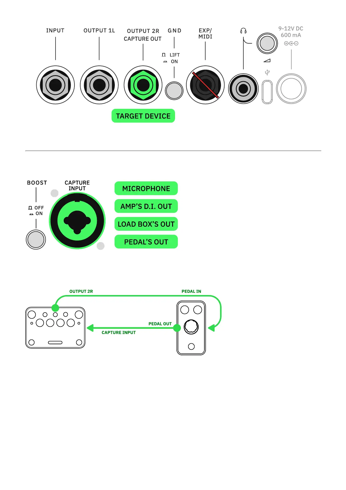 If you are capturing an overdrive pedal, connect its output directly to the Nano Cortex's