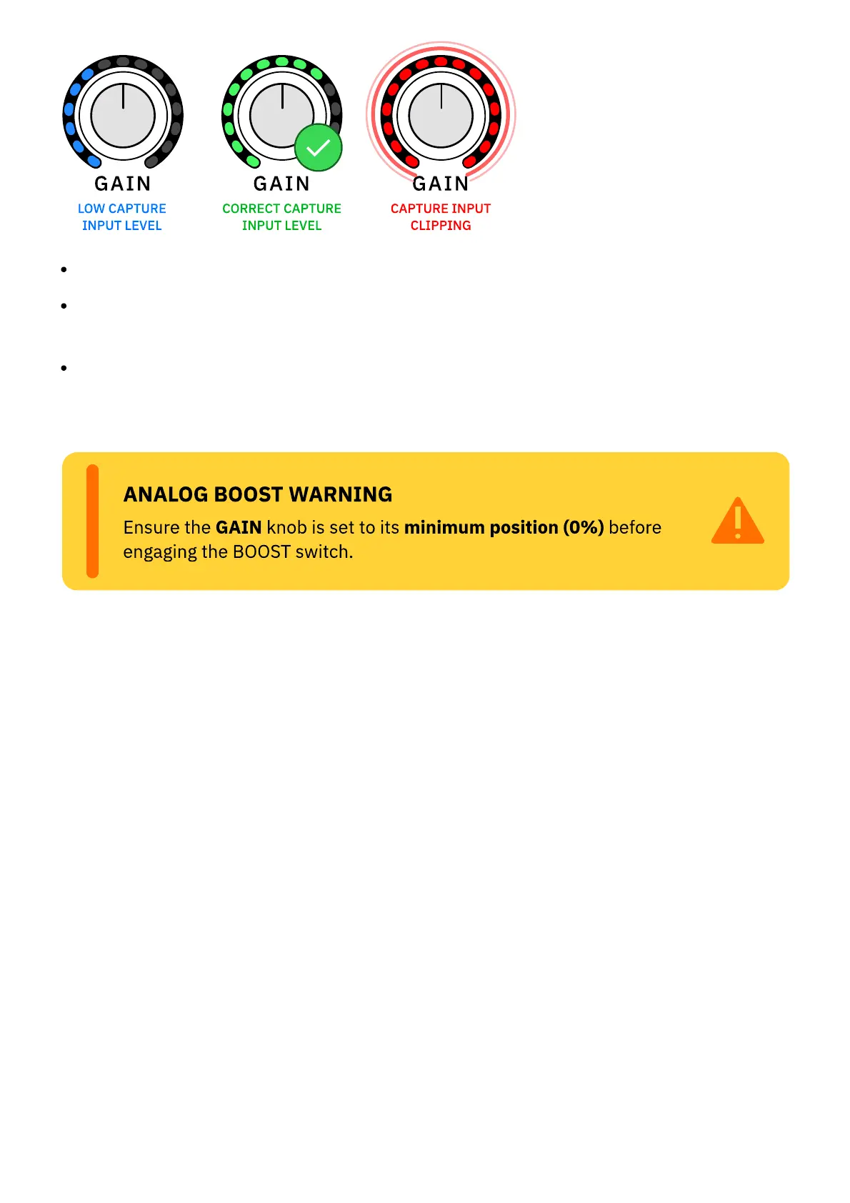 The GAIN LED ring will turn red and blink when the CAPTURE INPUT level is clipping. Turn