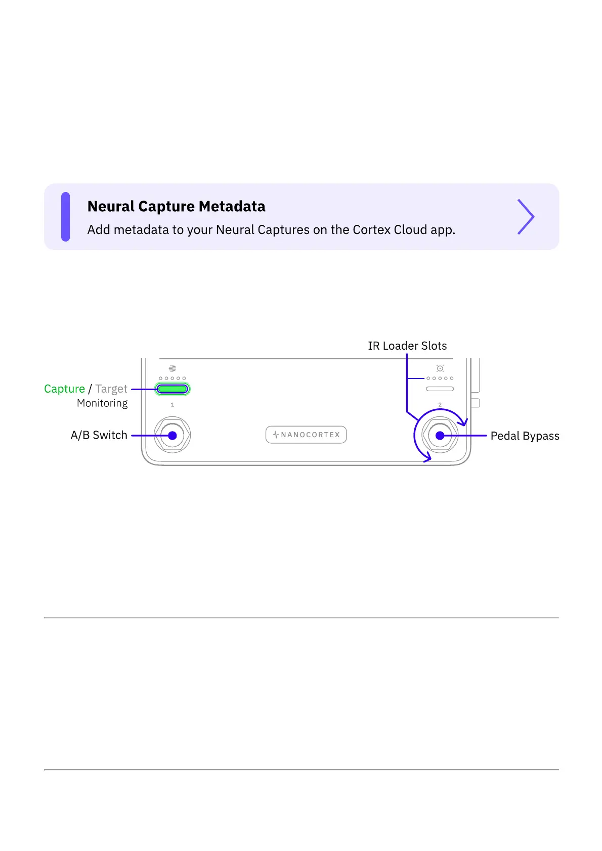 Press Footswitch I to toggle between the Neural Capture and the Target Device.