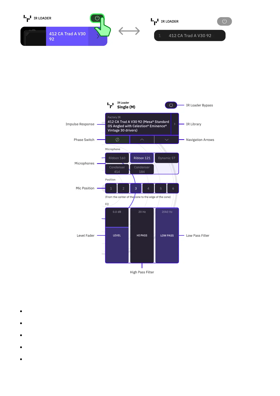 BYPASS: Tap to bypass/enable the IR Loader.