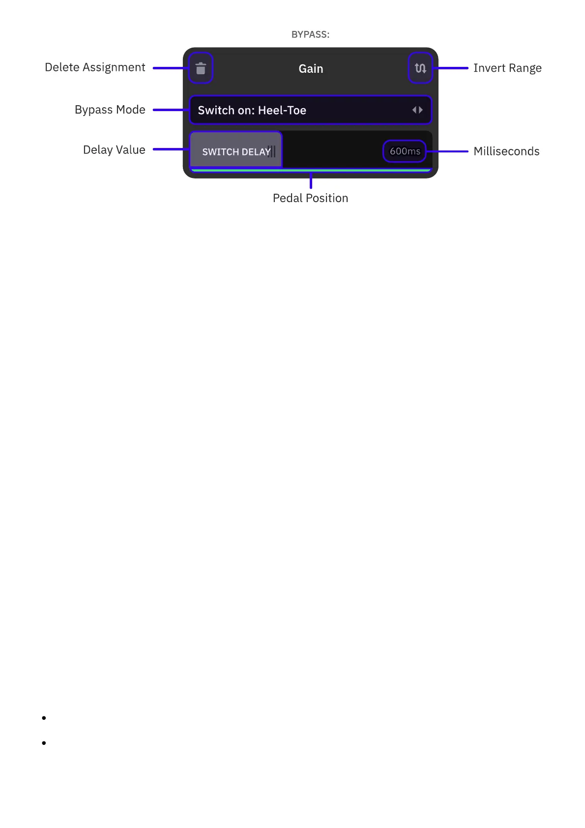 HEEL-TOE: The slot will be bypassed when the expression pedal is at heel position. Drag