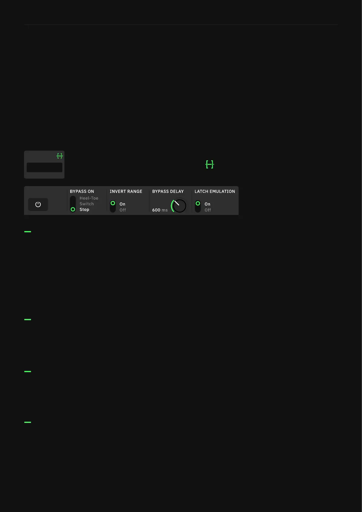 • Heel-Toe: Heel down the expression pedal to bypass the device