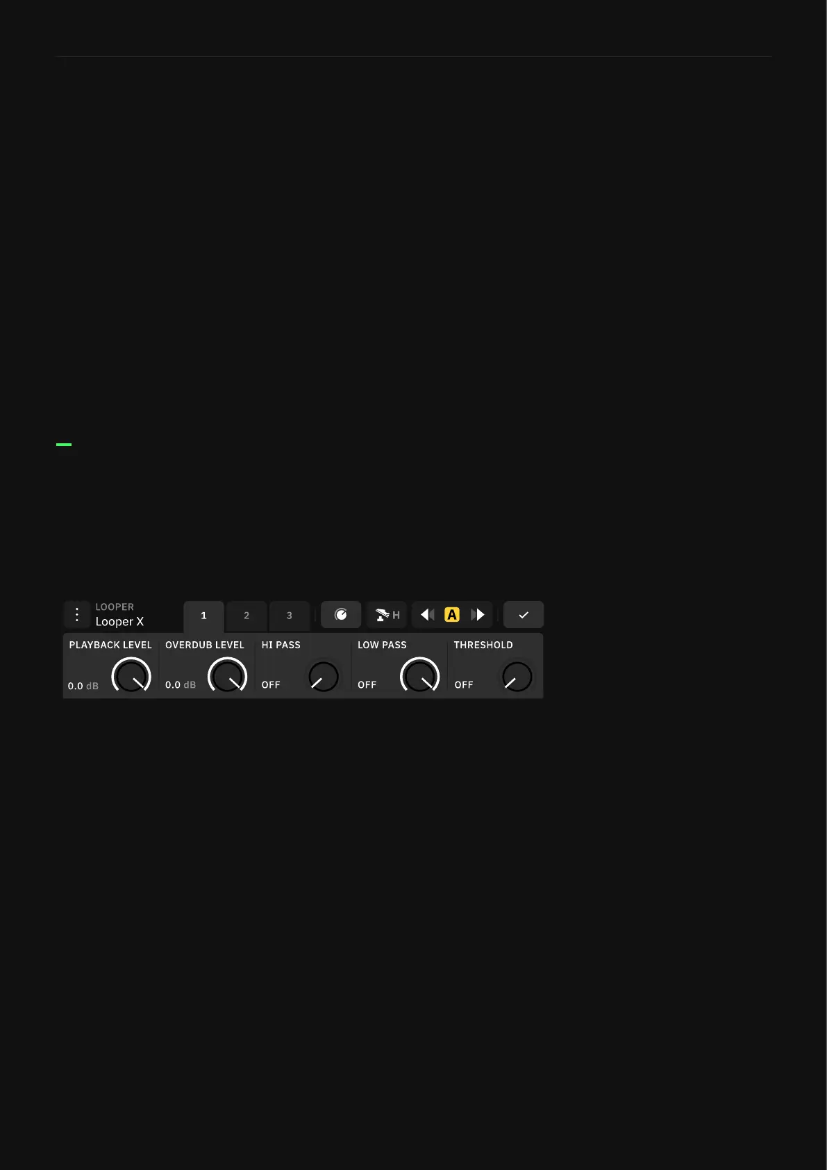 • PLAYBACK LEVEL KNOB: Adjusts looper playback level.