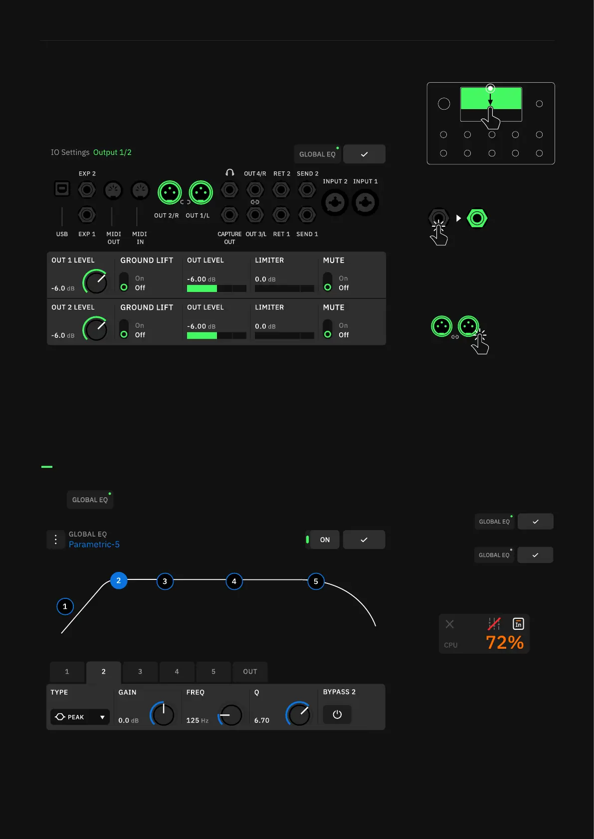 5-band parametric EQ that can be assigned to either Out 1/2, Out