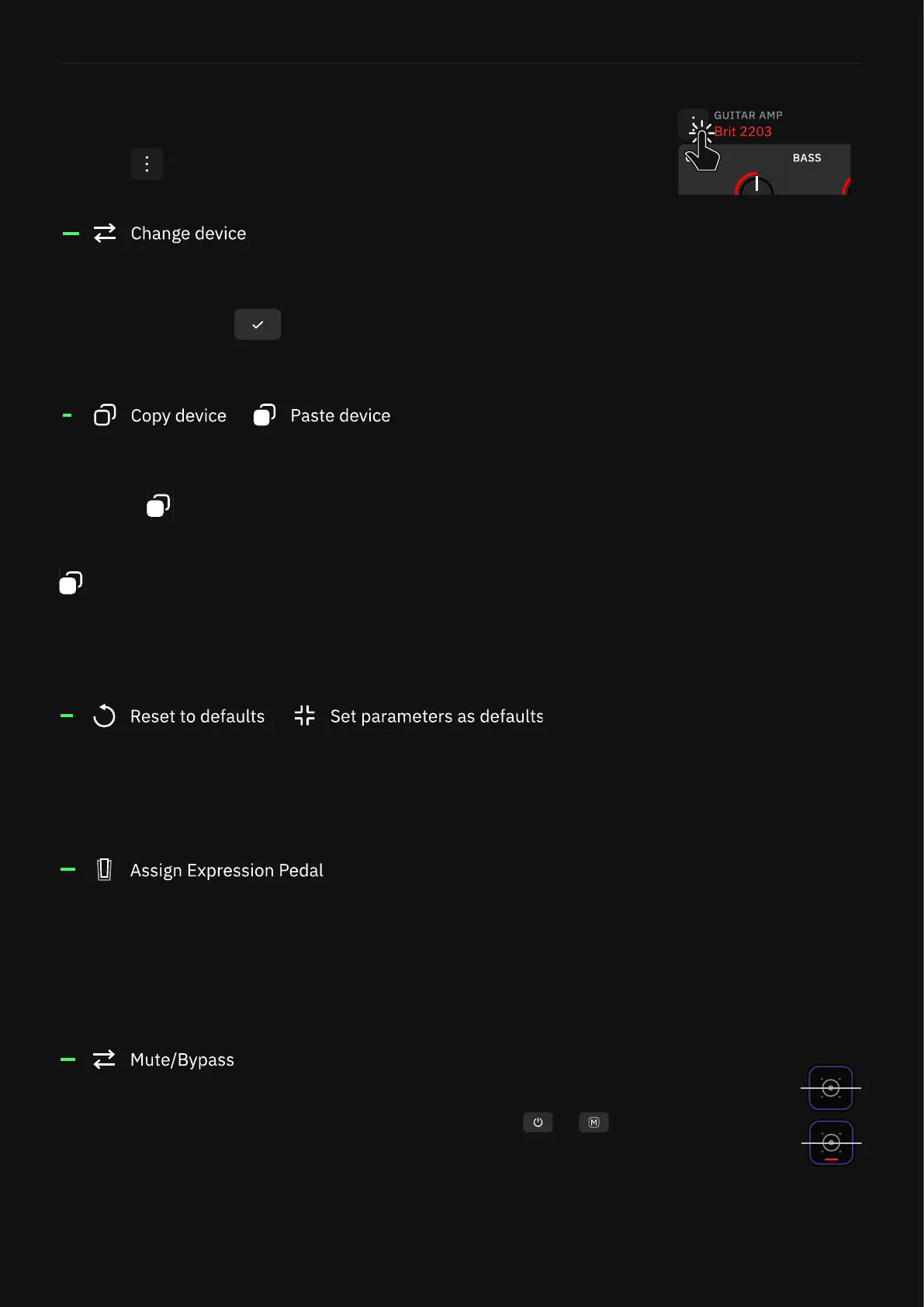 When a device block menu is open, you can tap the contextual menu