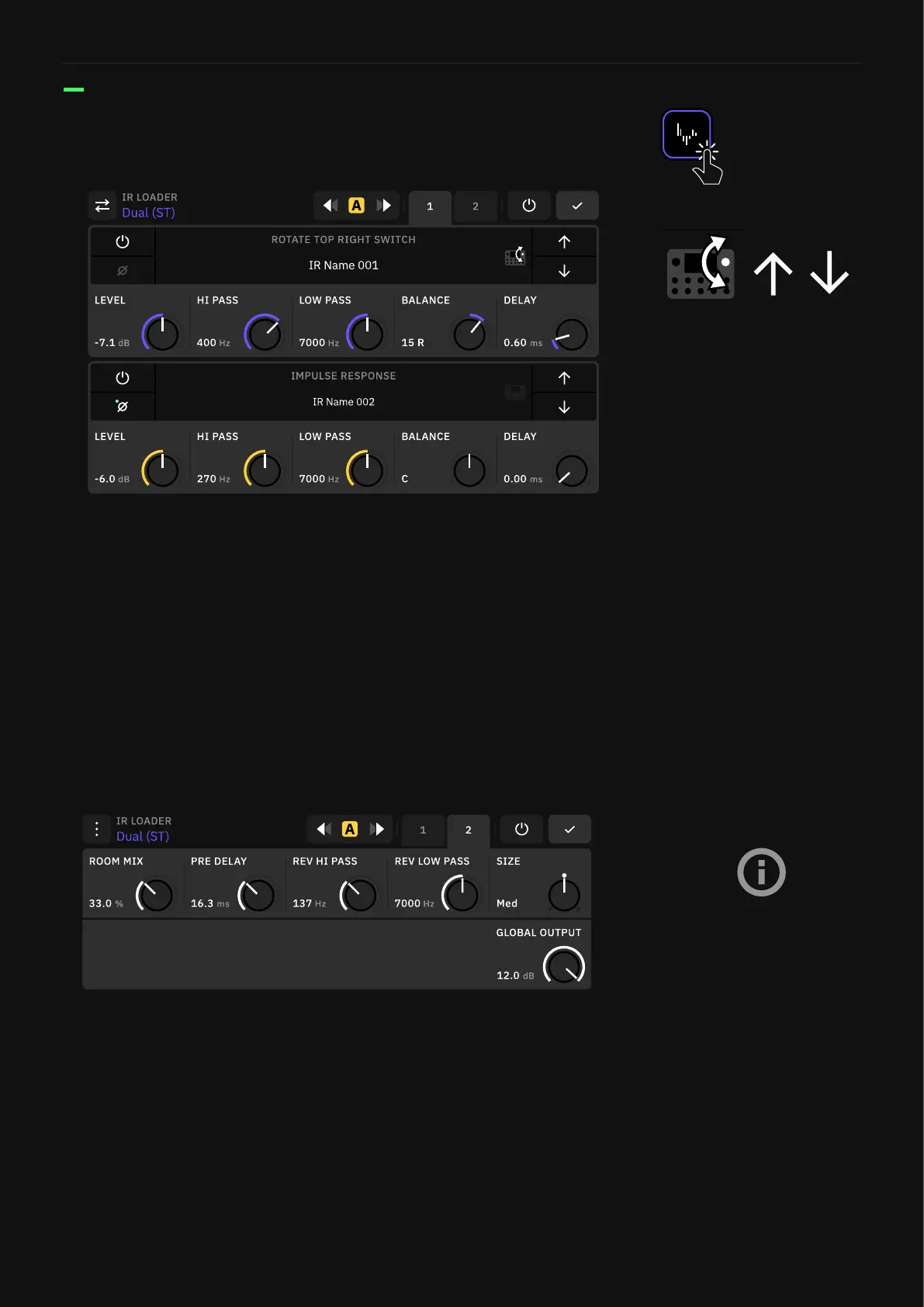 • GLOBAL OUTPUT KNOB (Dual): IR Loader block master output.v