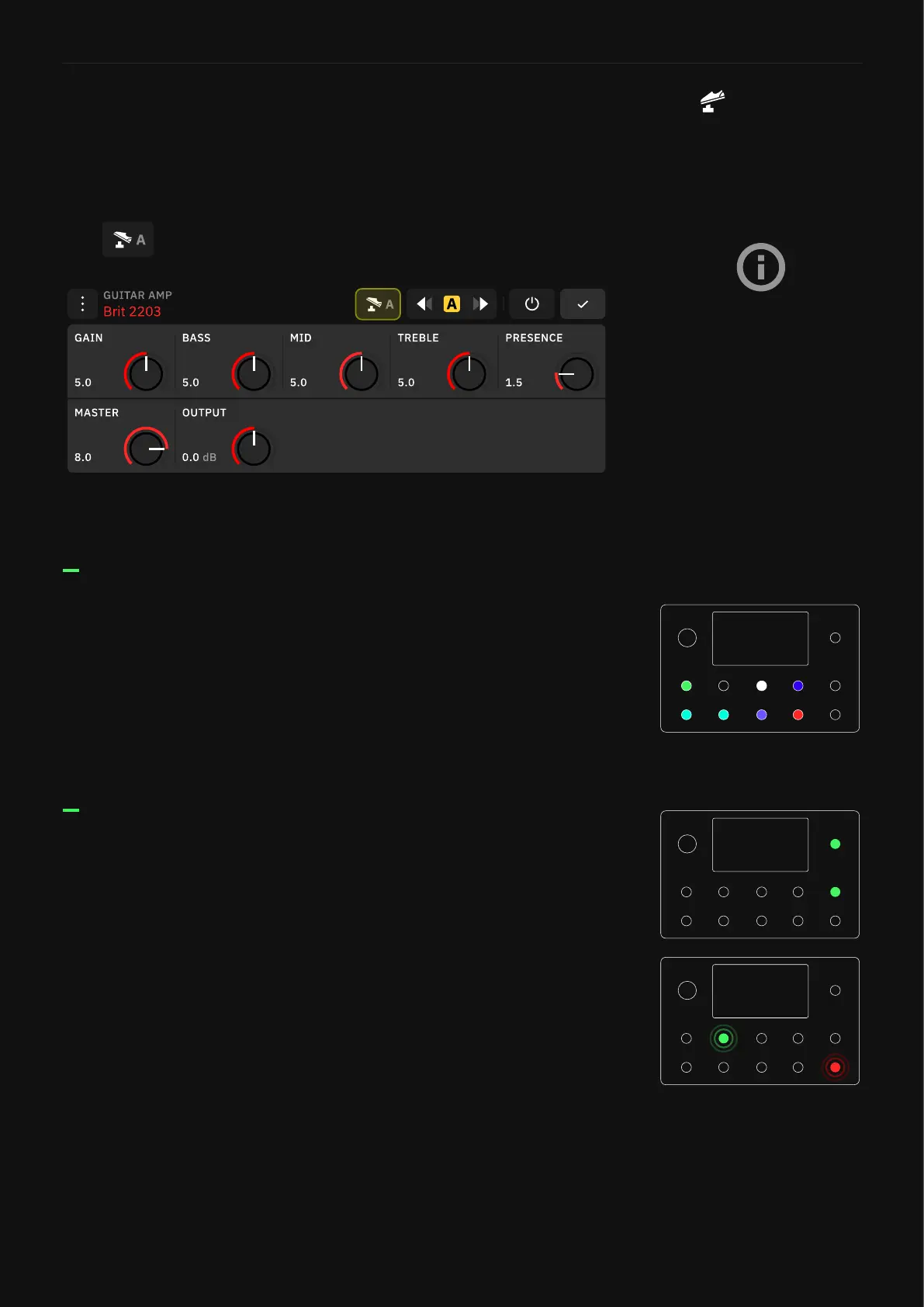 Once a block is assigned to a footswitch, the LED will illuminate