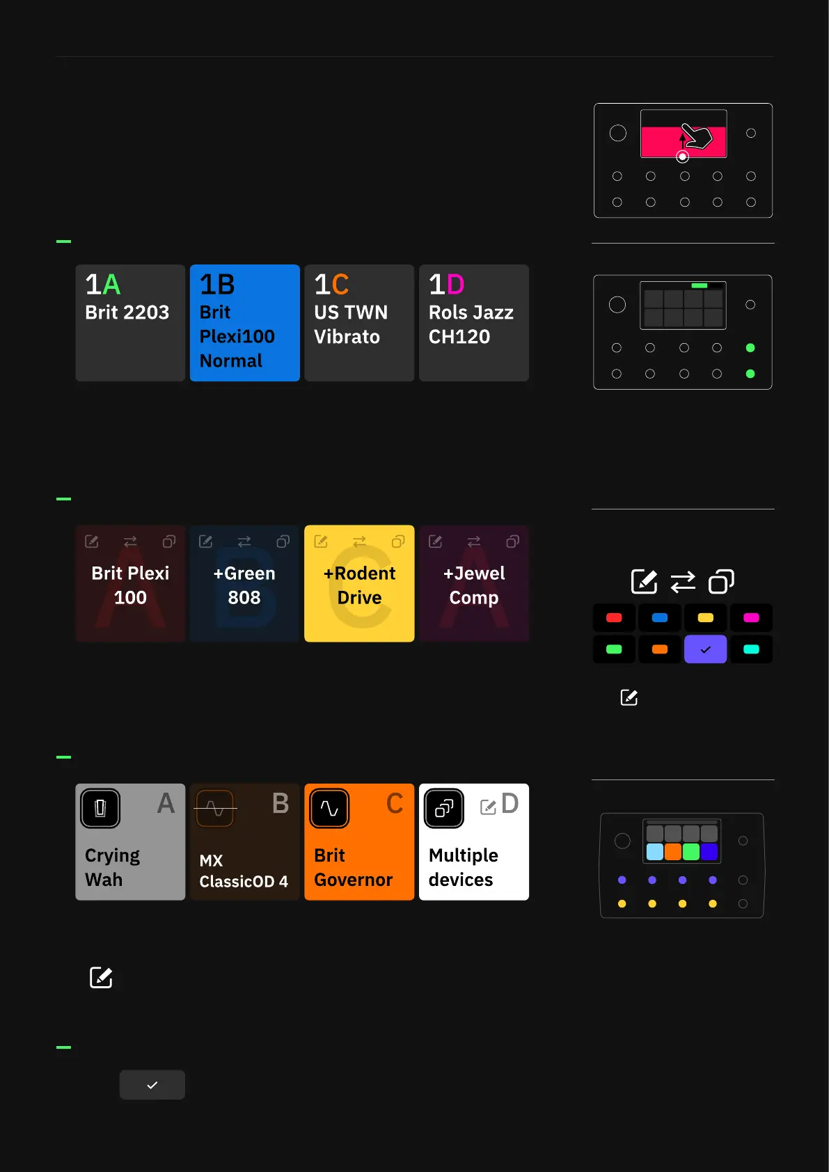 Gig View shows you the Preset assigned to each footswitch. Tap the