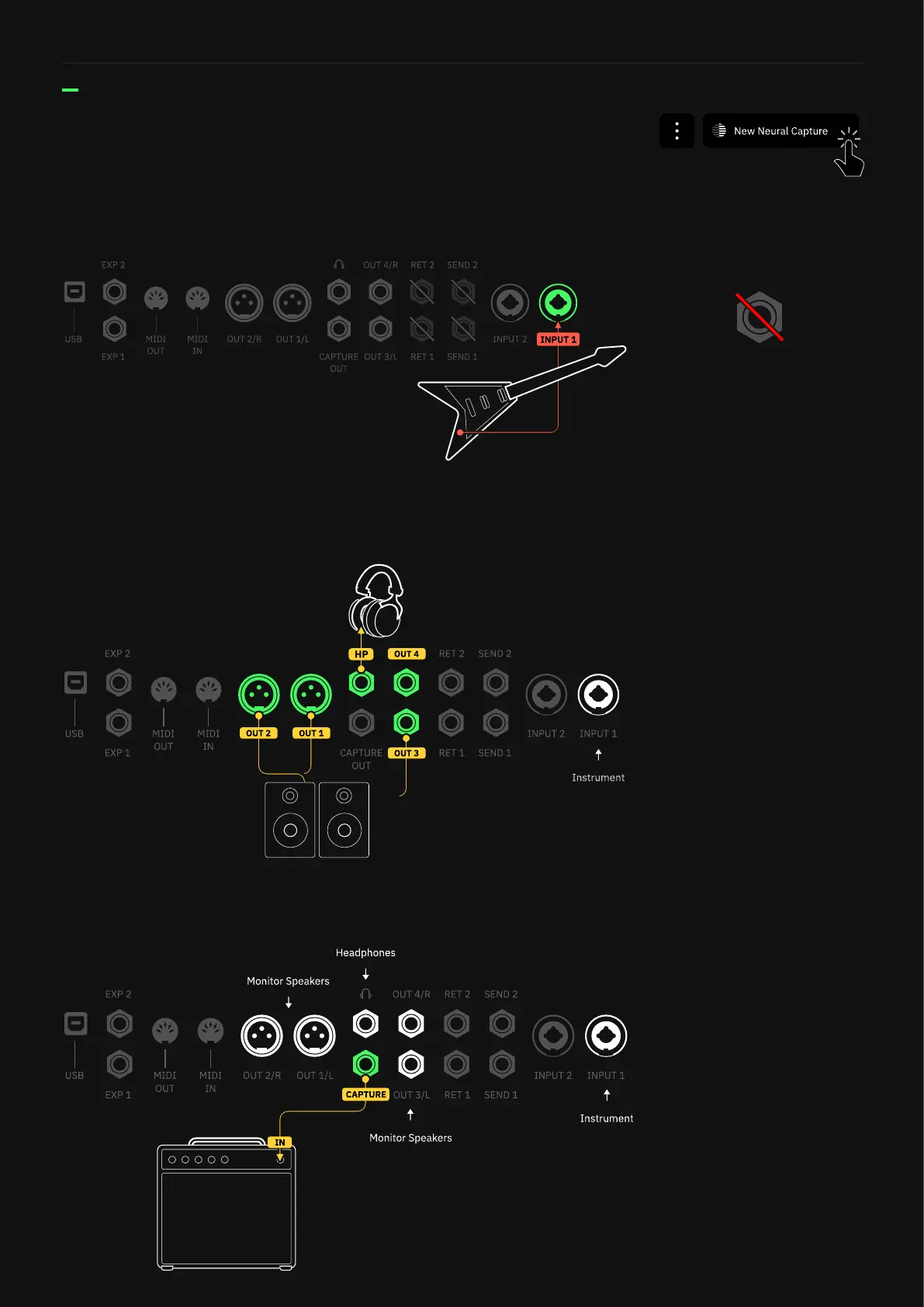 Connect the Quad Cortex’s CAPTURE OUTPUT to the INPUT of your