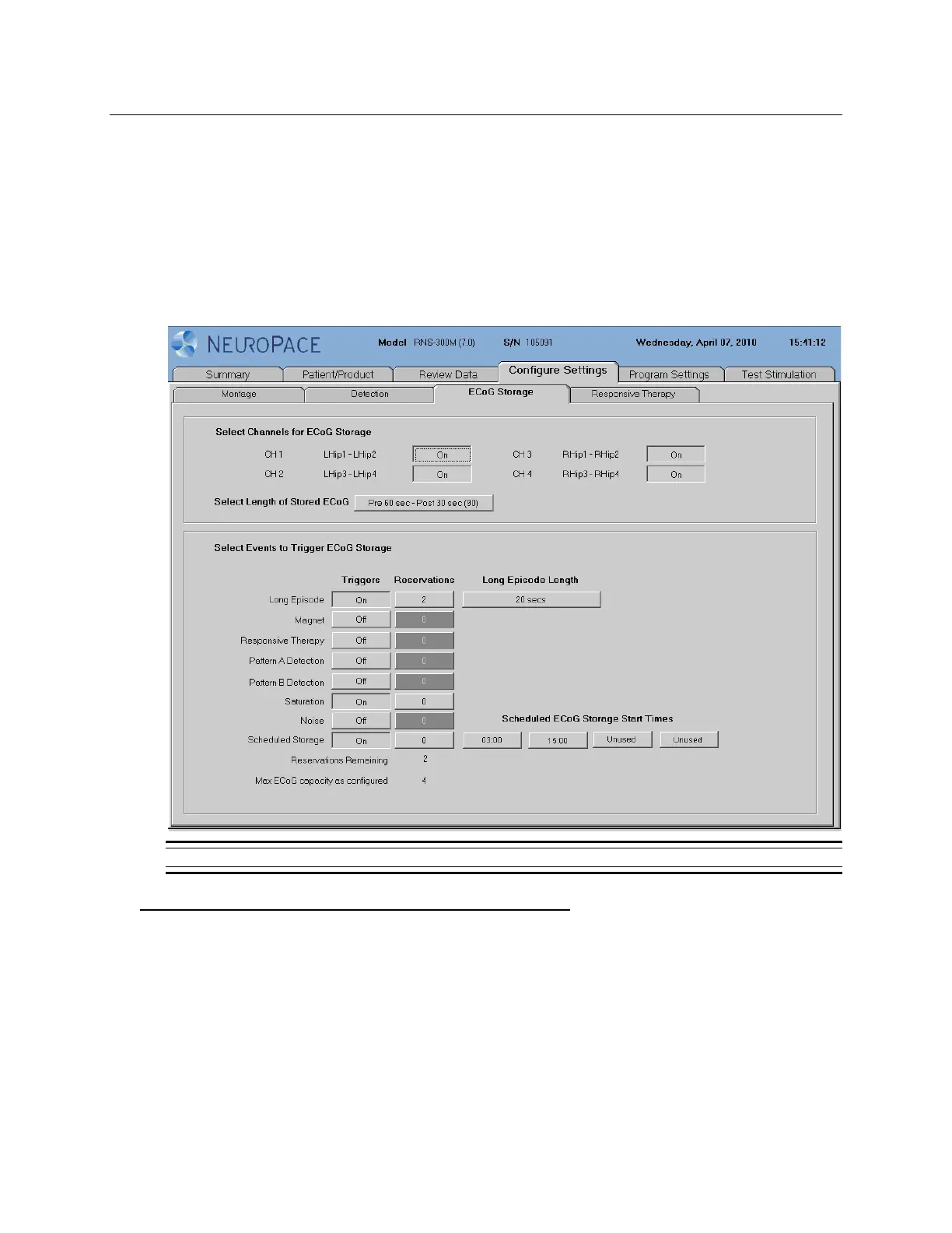 • The LENGTH OF STORED ECOG value may be increased if longer ECoGs are desired, and
