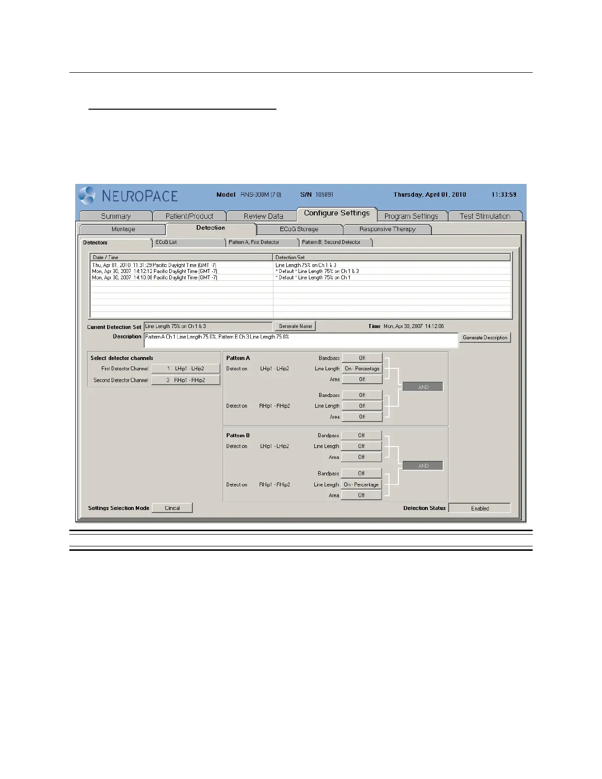 Initially, in order to capture ECoGs containing activity that can be used to configure detection settings