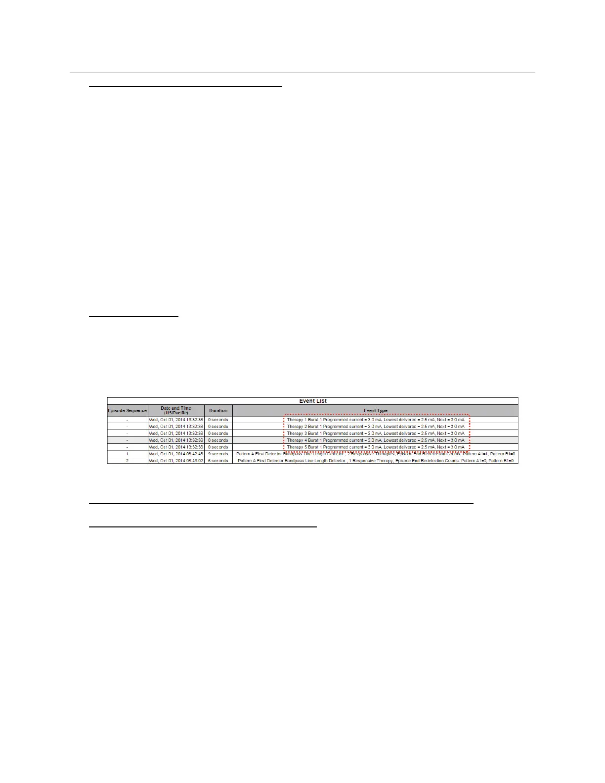 first entries in the PDMS interrogation report event list show the “Programmed current” is higher