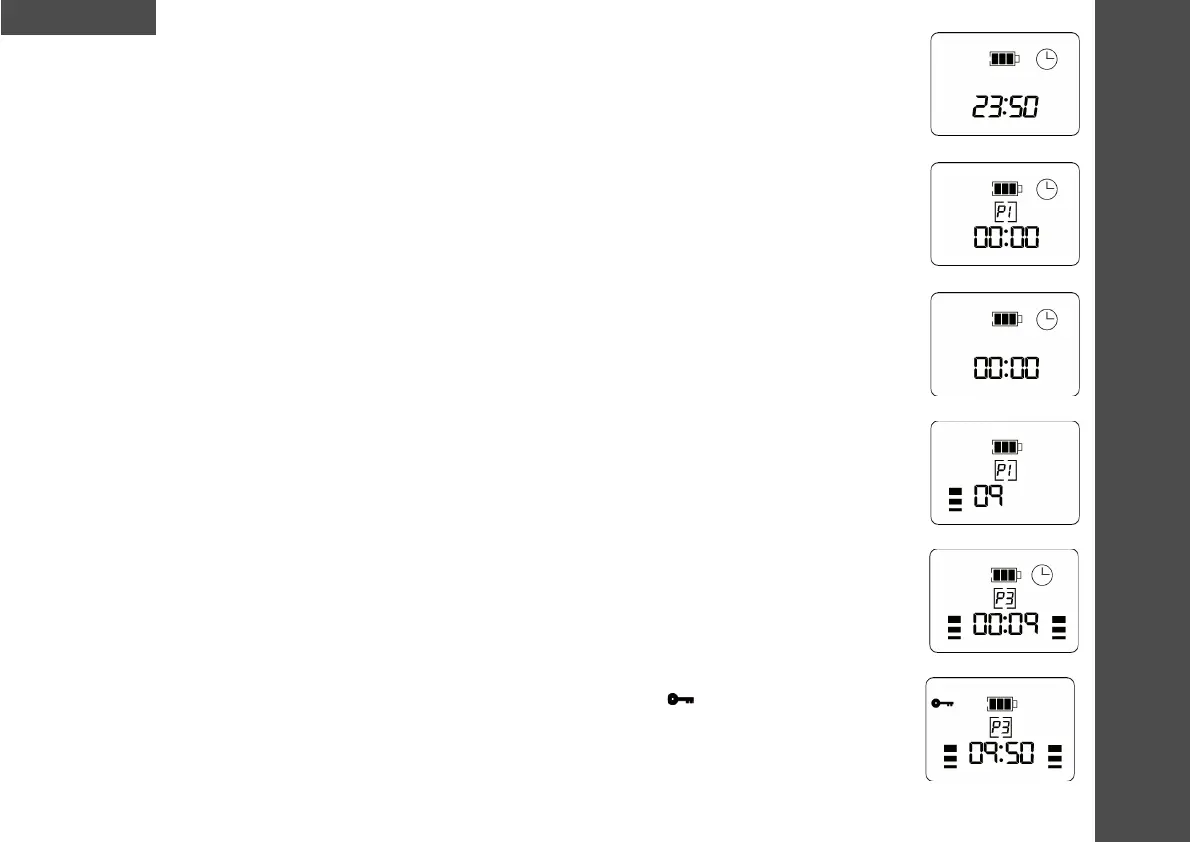 time in hours and minutes for a period of 3 seconds (Display 1). After 3 seconds the screen changes to that