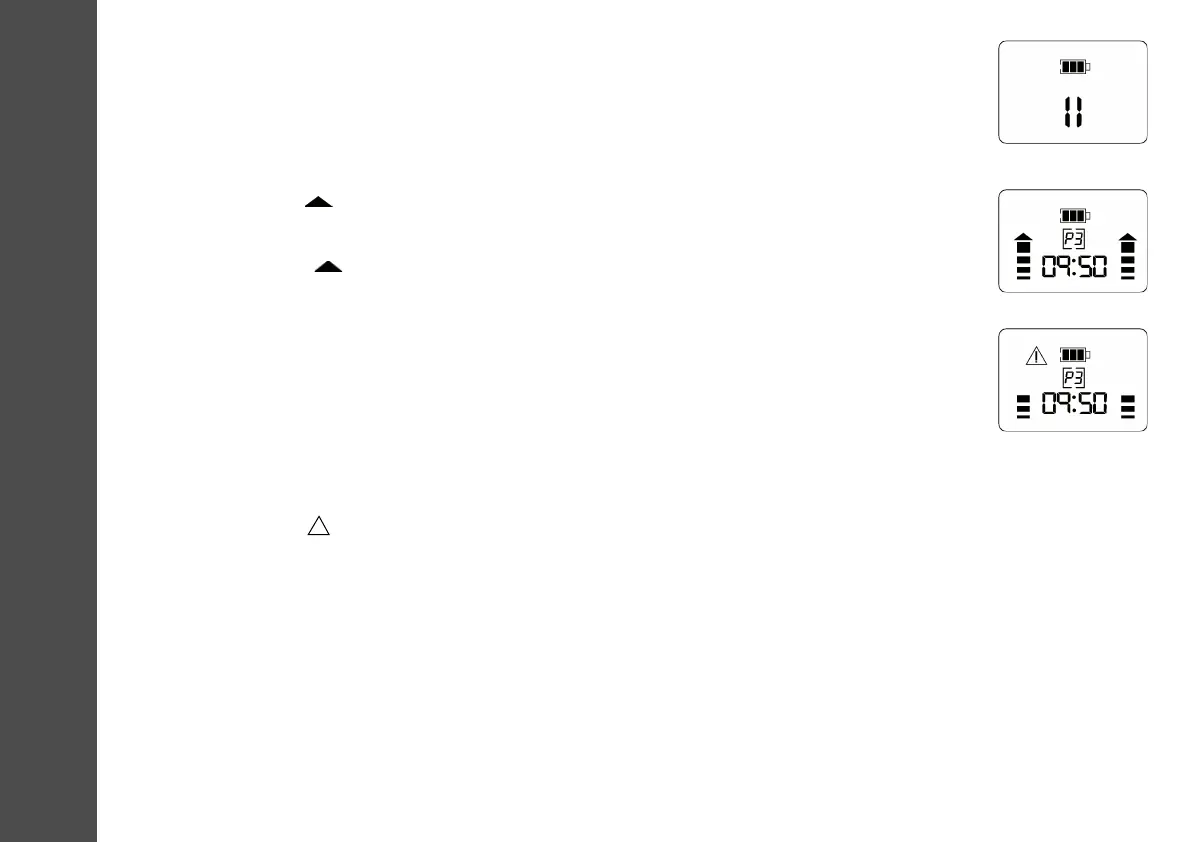 • Das Warnsymbol ( ) erscheint blinkend in der Anzeige.