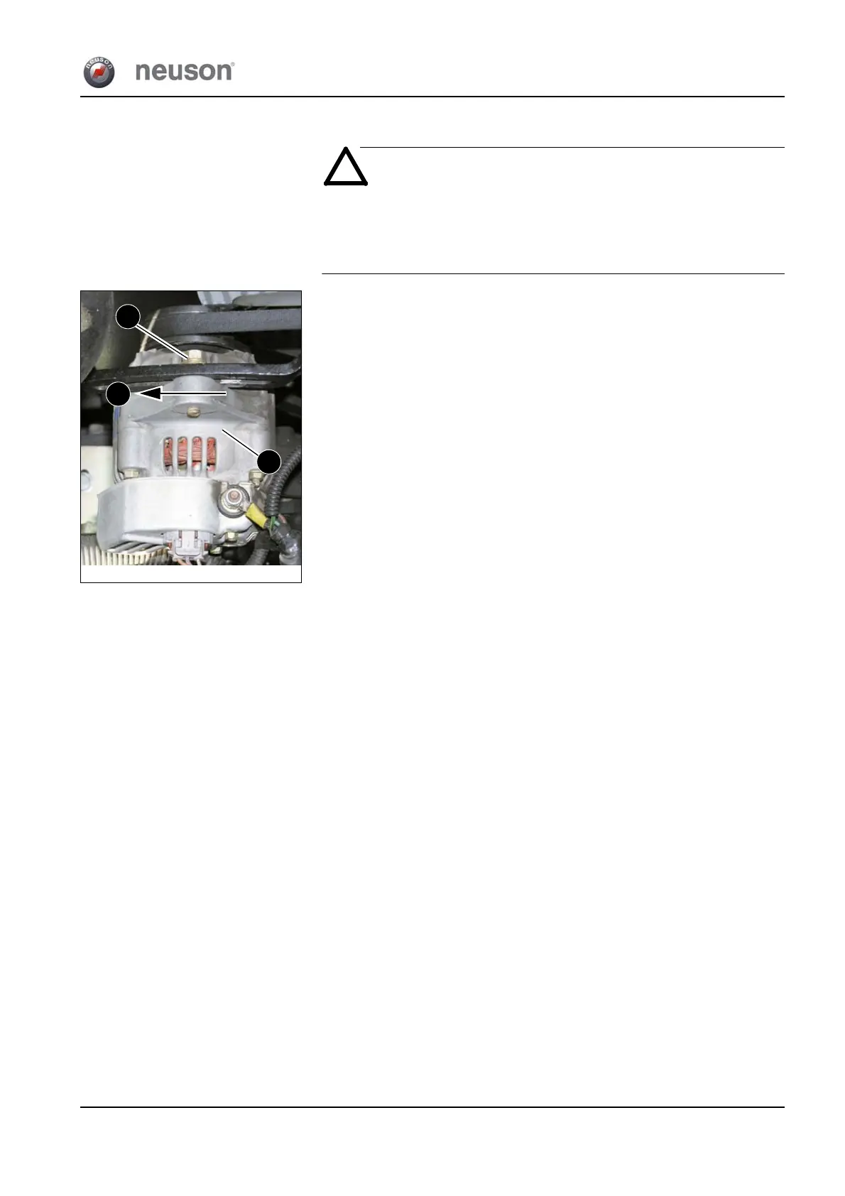 ☞ Keep the alternator in this position, and at the same time retighten fastening screws 2