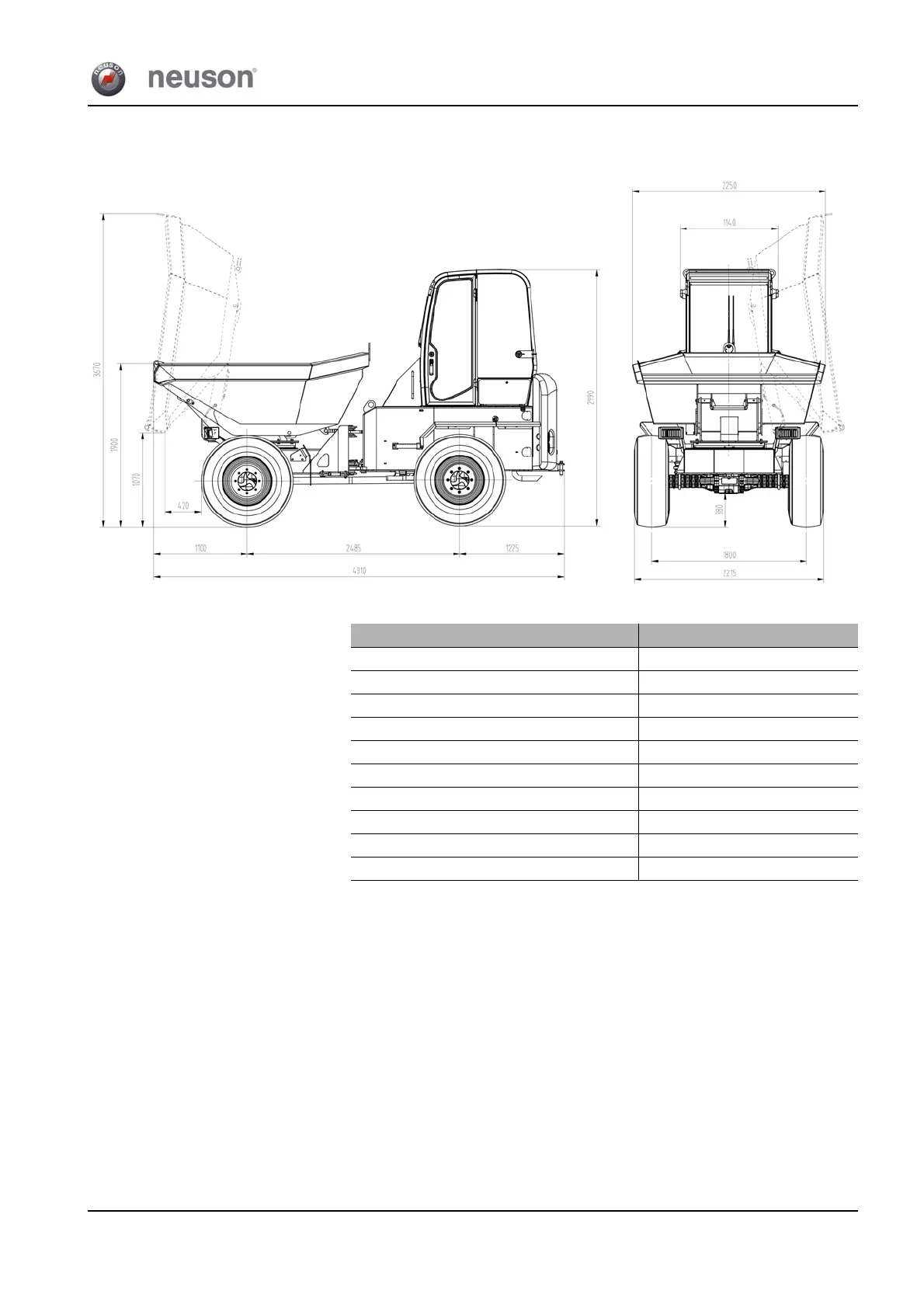 6.15 Dimensions model 6001 S (swivel skip) with cab