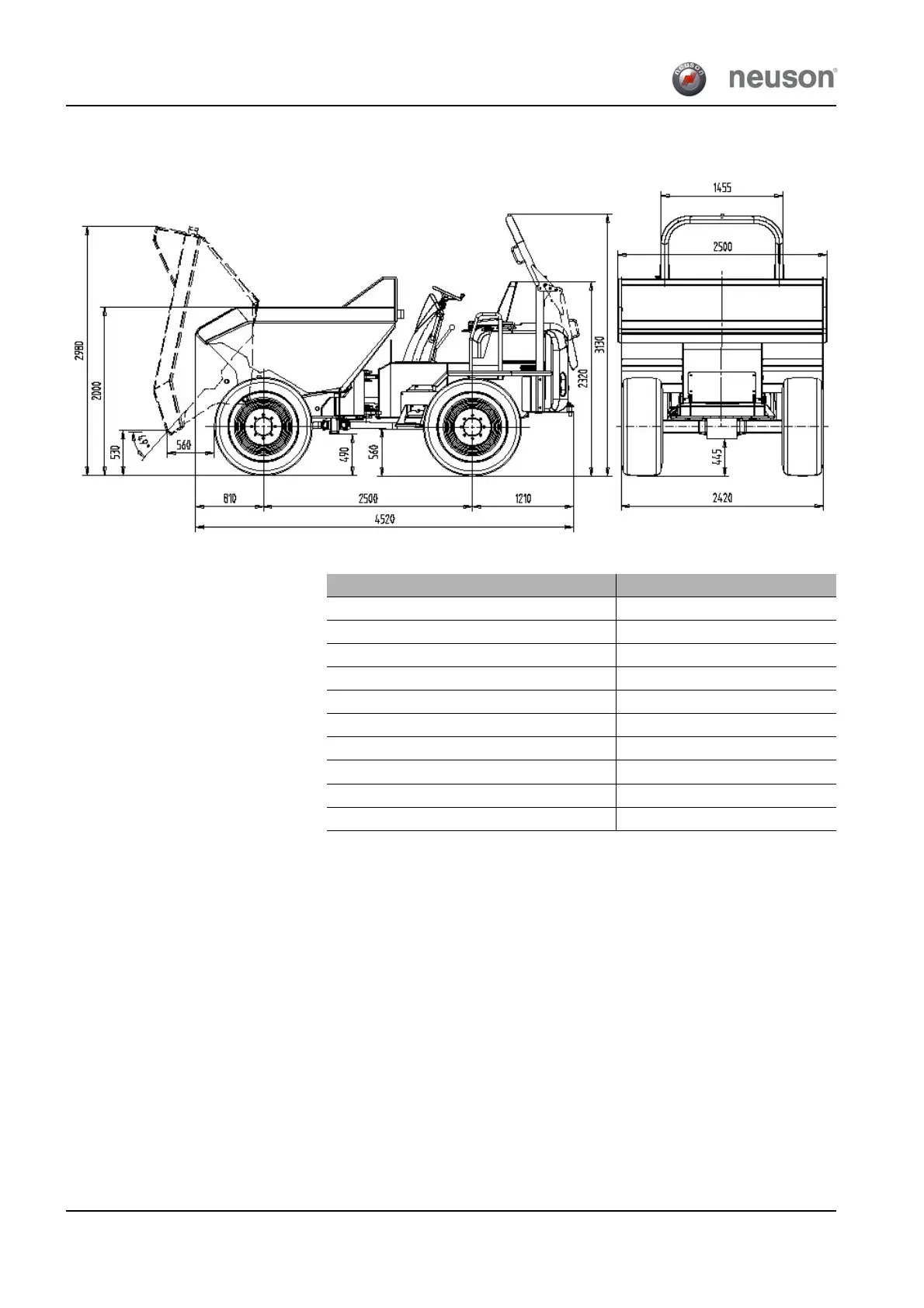 Overall height with dumped-out skip