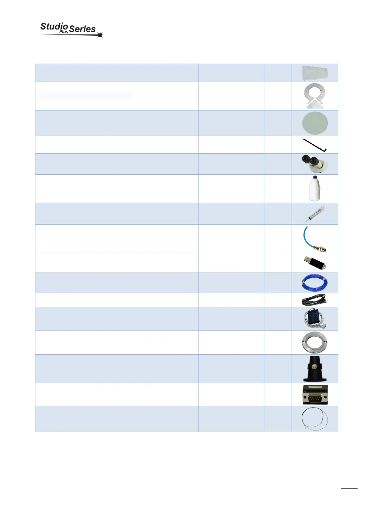 The package contains the following items: