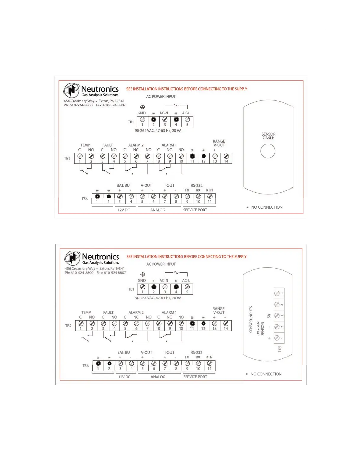 A label depicting the terminal block arrangement is affixed to the top of the chassis for easy