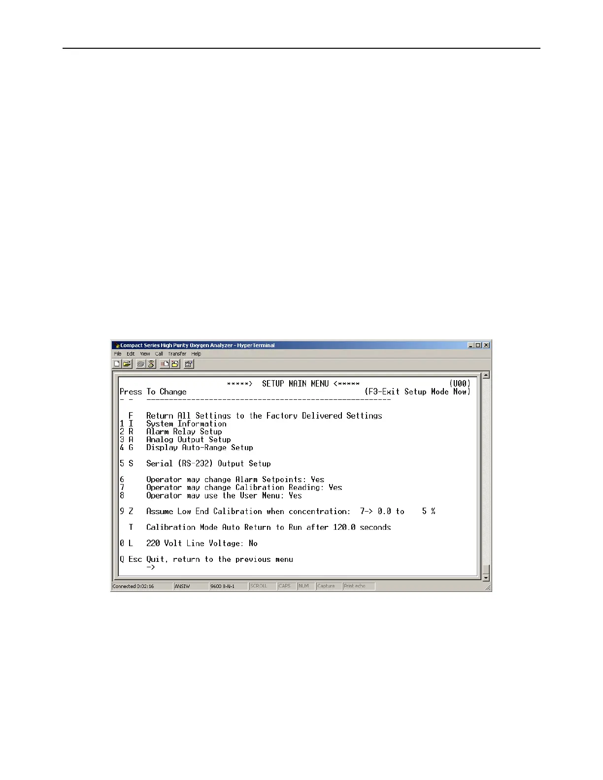 Machine format with checksum can be selected via the analyzer control panel, or through the RS-