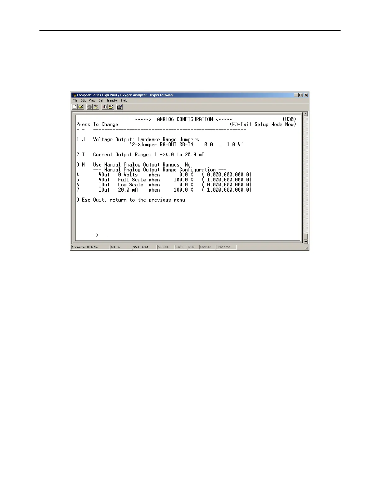 menu is accessed from the Analog Output Setup menu by typing “3” or “M” on the RS-232