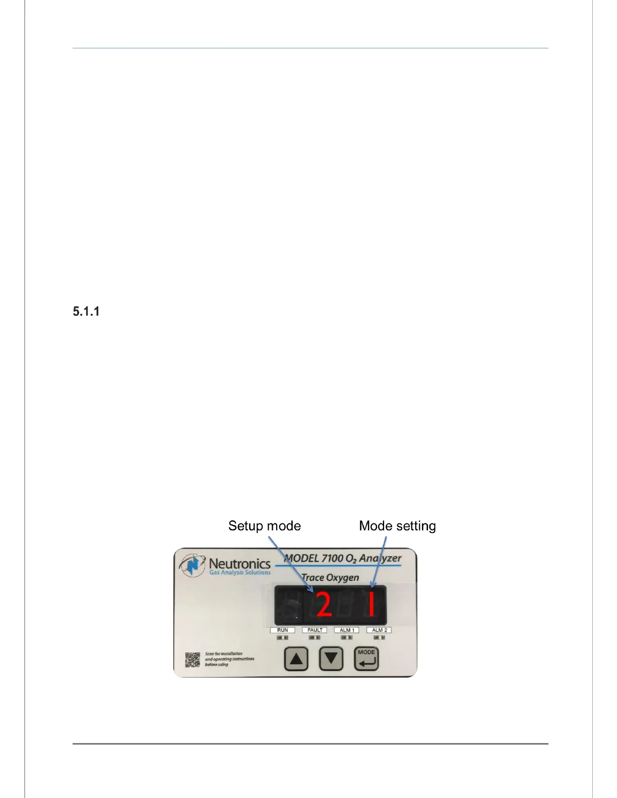 to indicate that the analyzer has accessed setup mode. Release the “MODE” key to activate setup mode.