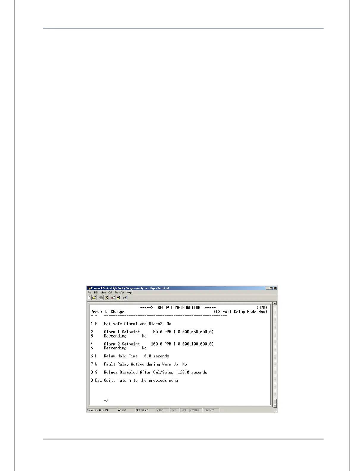 alarms, controls, and relays. It is accessed from the Setup Main Menu by typing “2” or “R” on the RS-232