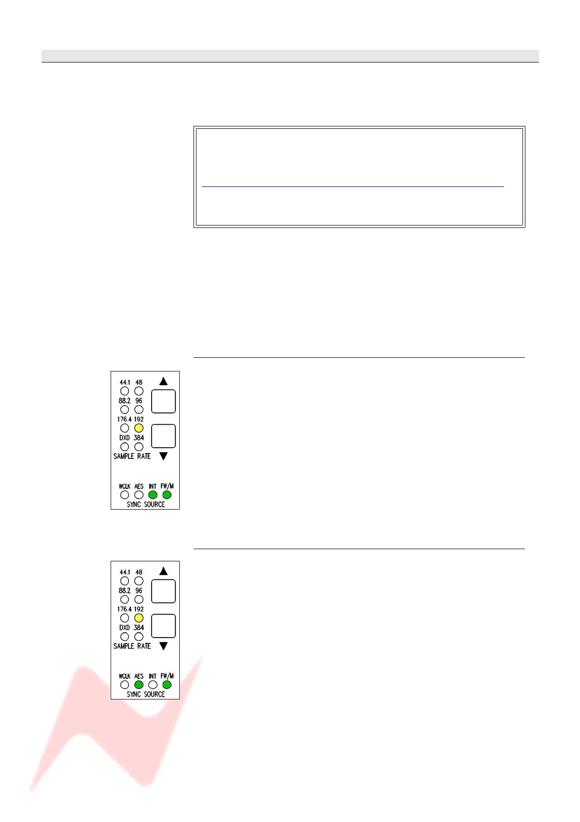In FireWire mode, selection of the sync source and sample rate is done