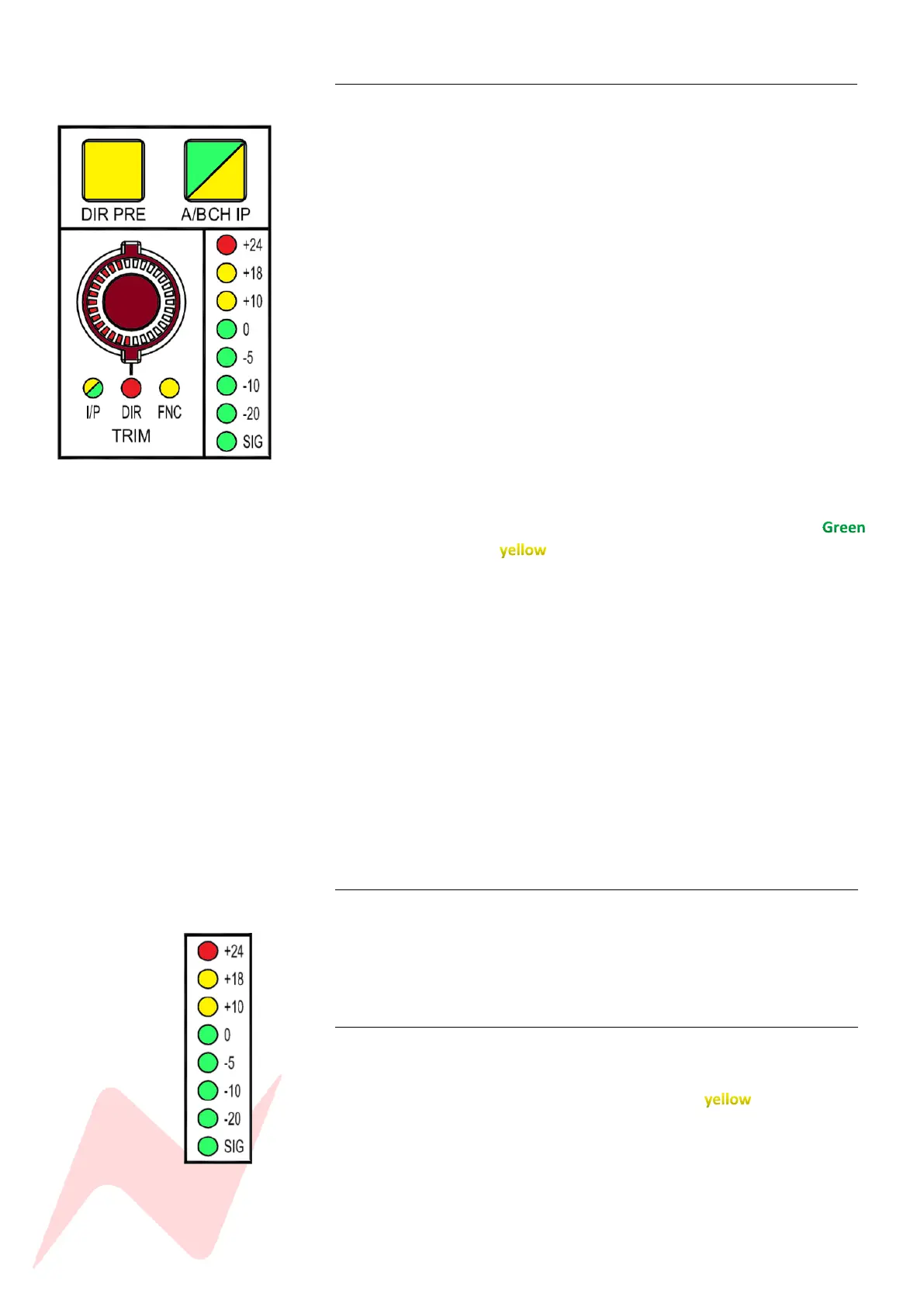 illuminate green and levels above 0dB will illuminate . The Red LED