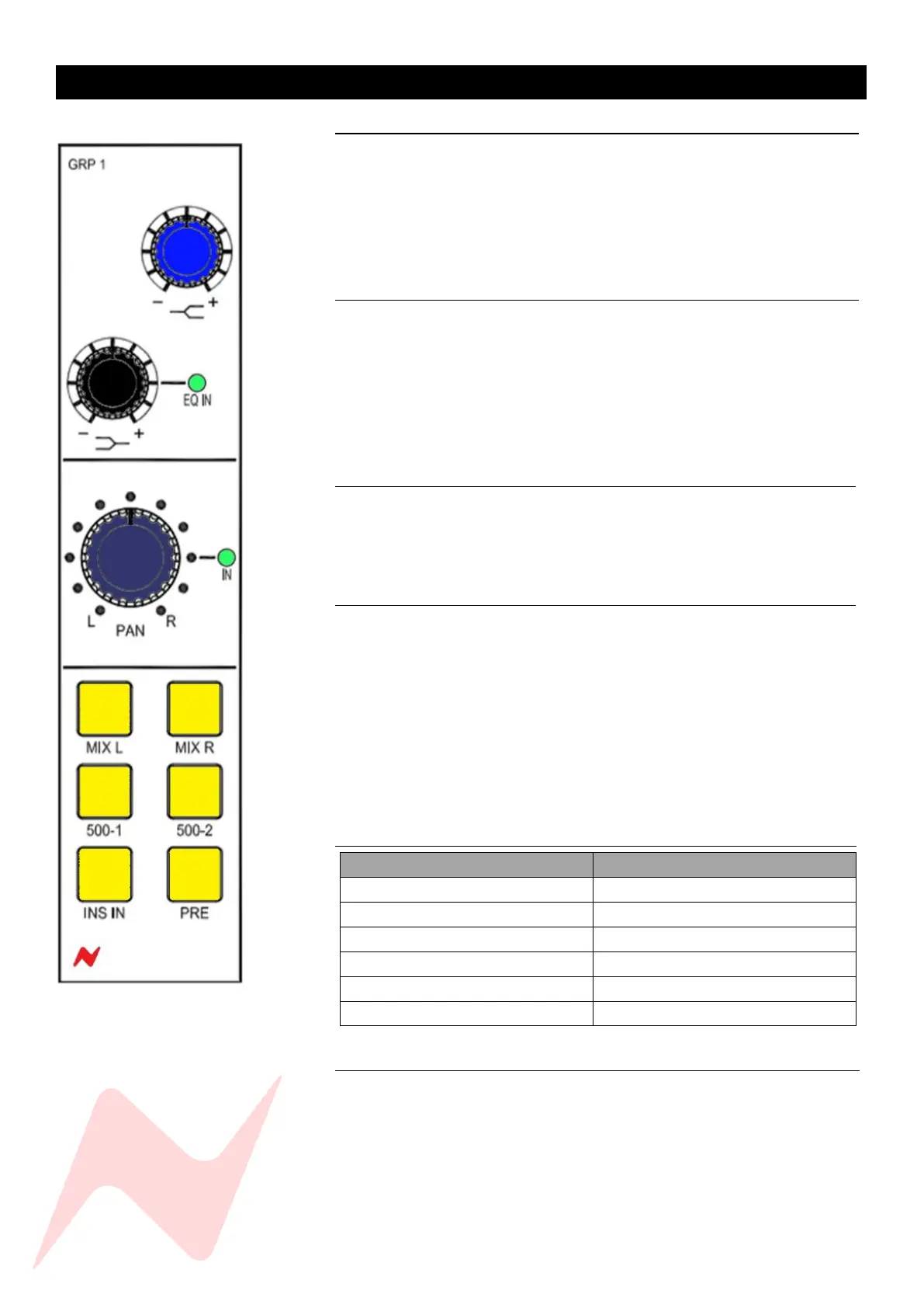 push-activation. When pressed, the Group EQ is active and the EQ IN LED