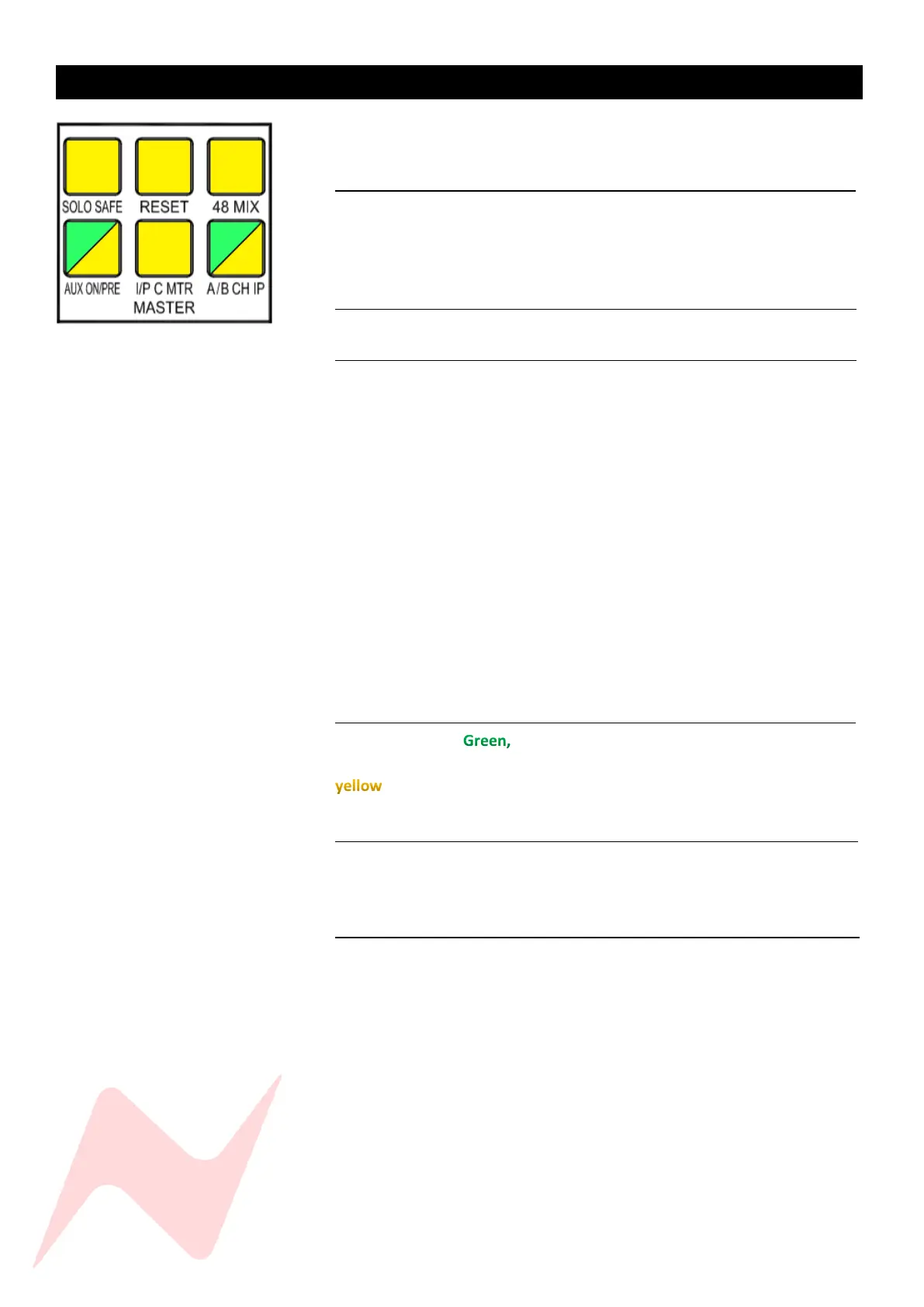 toggles all channel AUX’s 1, 2, 3 or ST CUE on or off. When illuminated